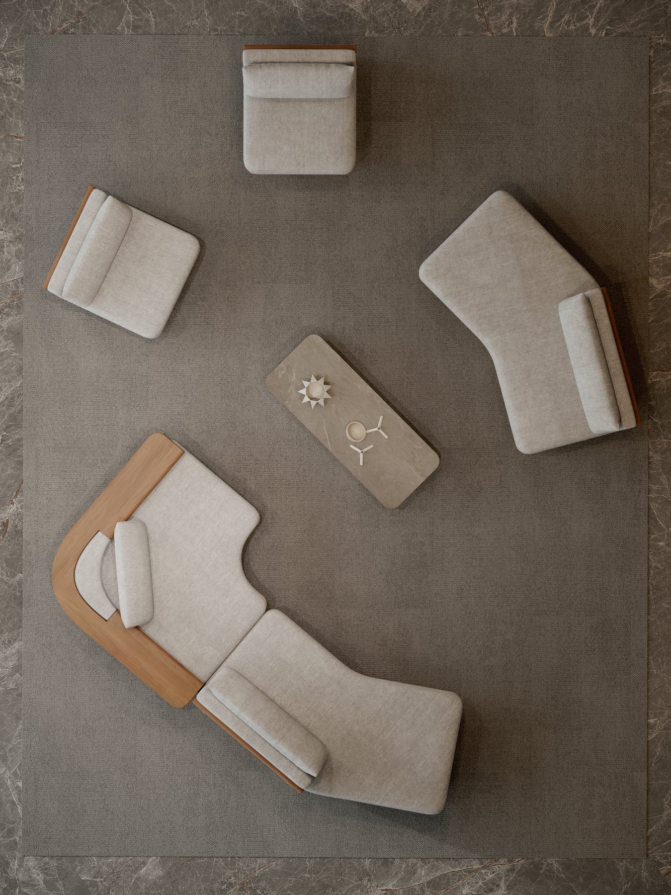 The Alvo Collection brings a fresh material expression to SNOC’s identity, combining bold aluminium profiles with warm teak details and natural woven textures. The lounge group consists of an armchair, a 2-seater, and a 3-seater, each shaped with clear geometry and a calm, contemporary character.