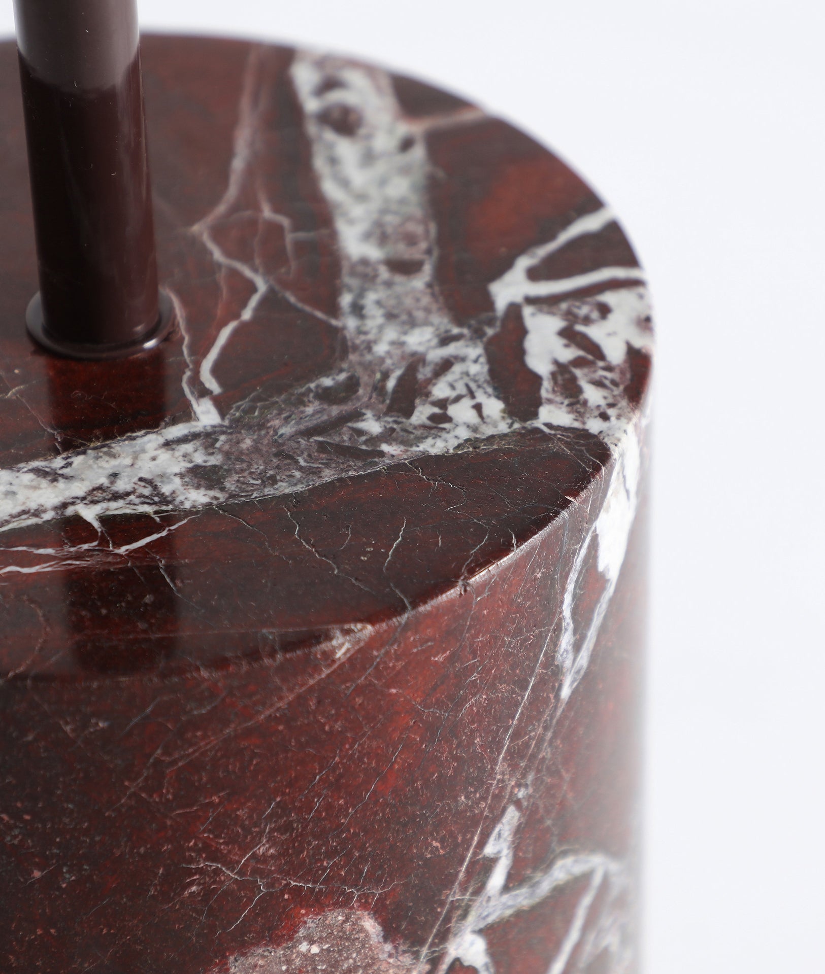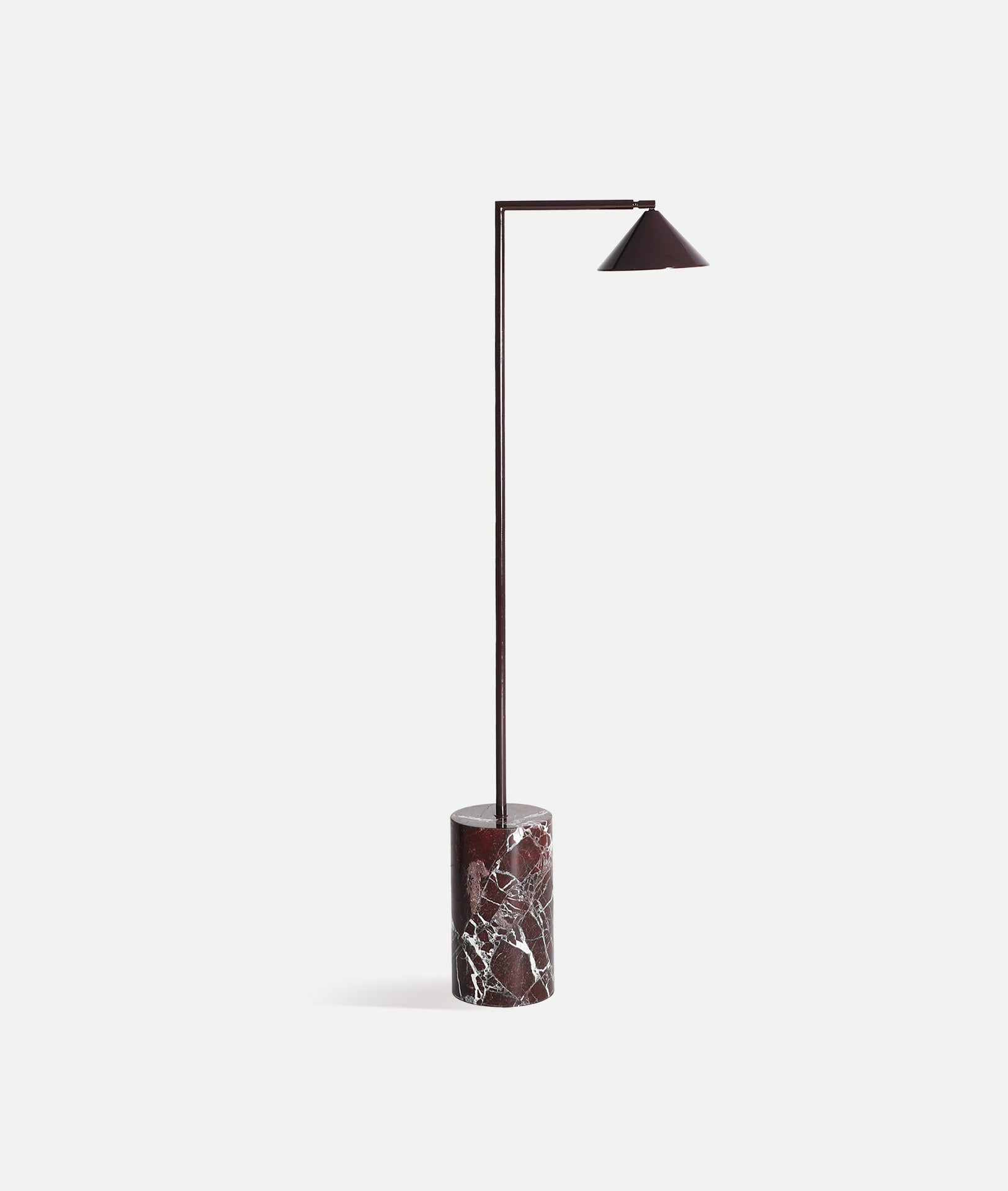 NERO is a sculptural floor lamp that combines veined chocolate marble with a matching structure. Its strong vertical design makes it a striking visual accent piece.