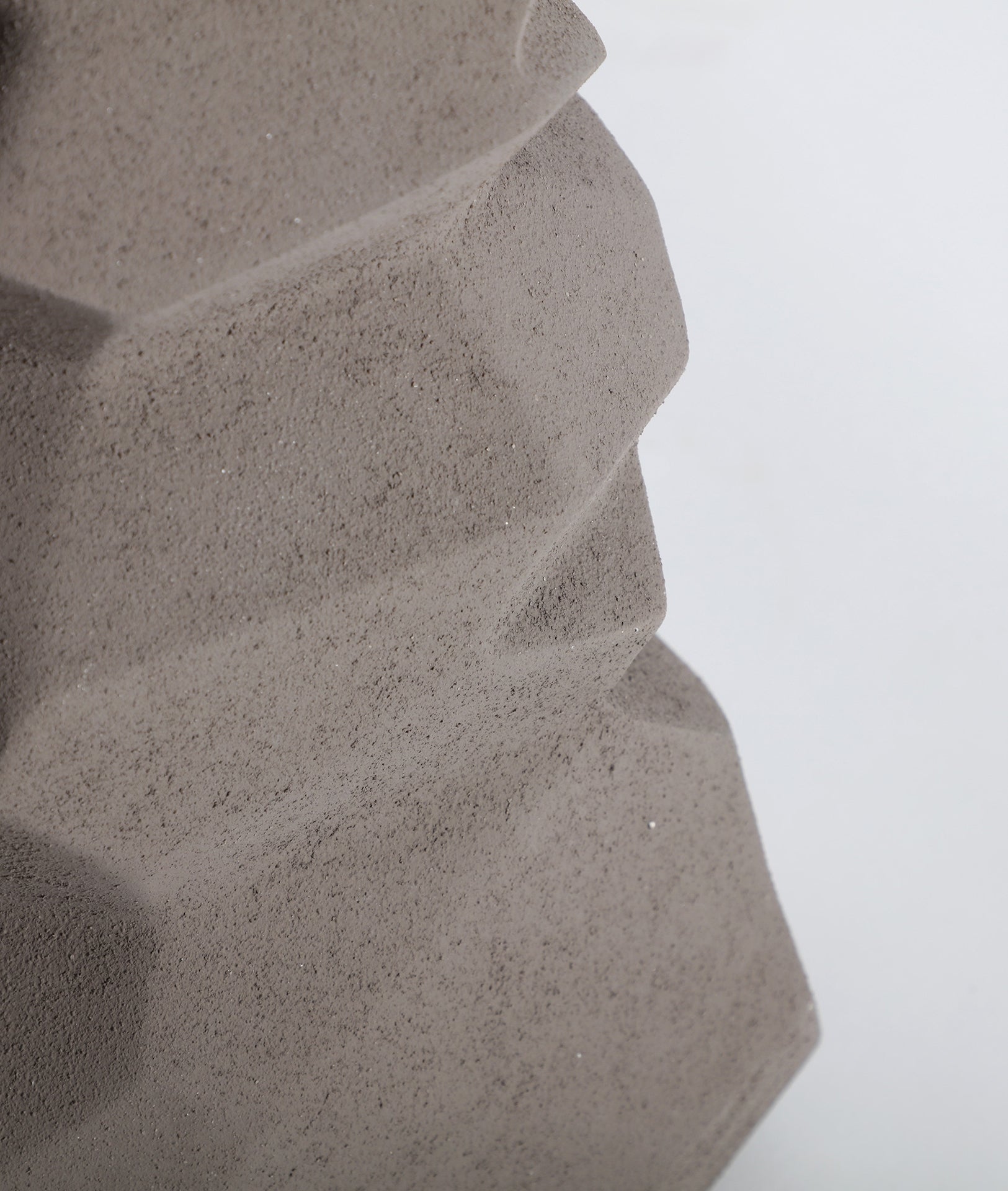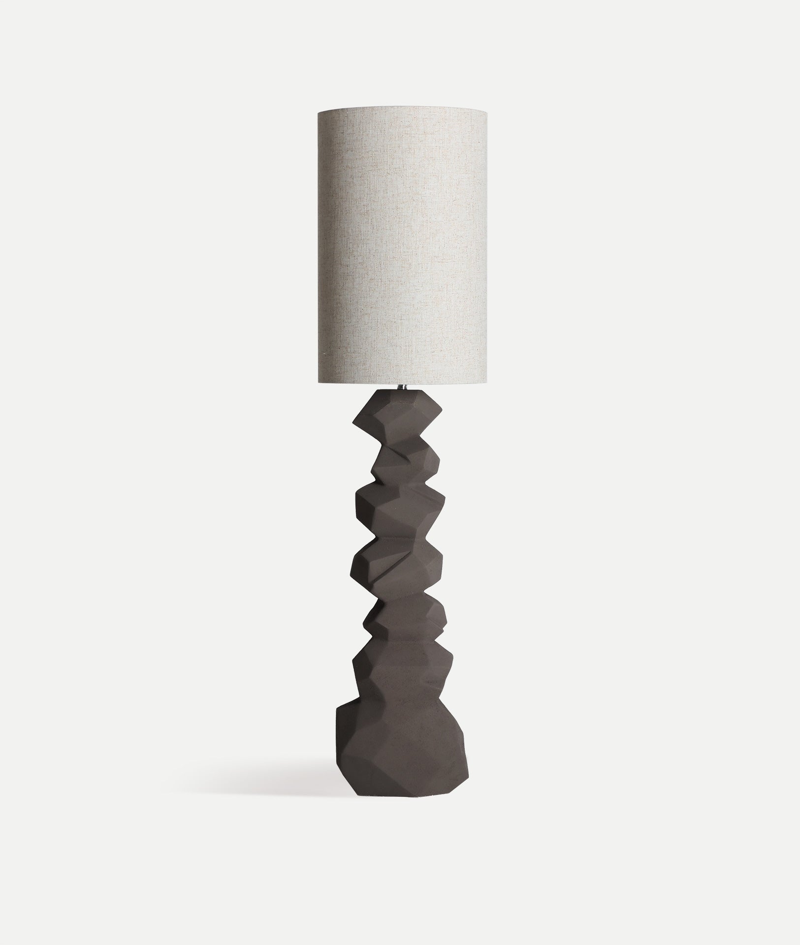 Material strength and sculptural presence. The PEDRA floor lamp by KODU combines a grey ceramic base with a rough finish and an off-white fabric shade. Its design, inspired by the solidity of carved stone, adds character and texture to projects that value authenticity and natural harmony.