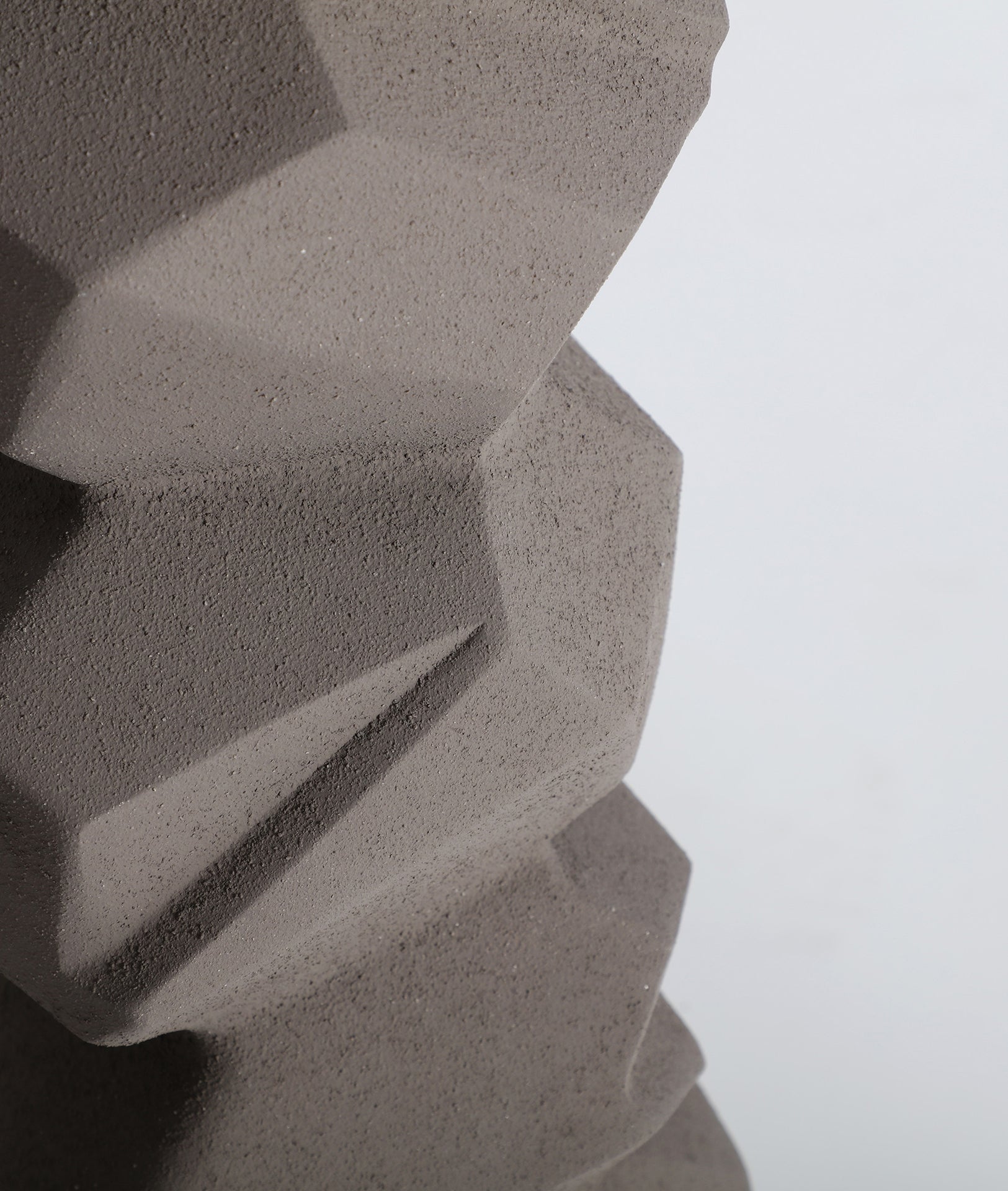 MATERIAL, COLOR, AND FINISHES:CERAMICS IN GREY WITH A ROUGH FINISH, COMBINED WITH OFF WHITE POLYESTER