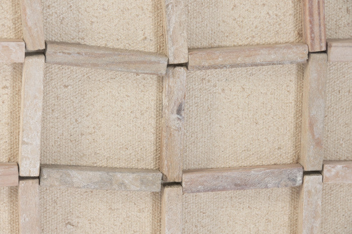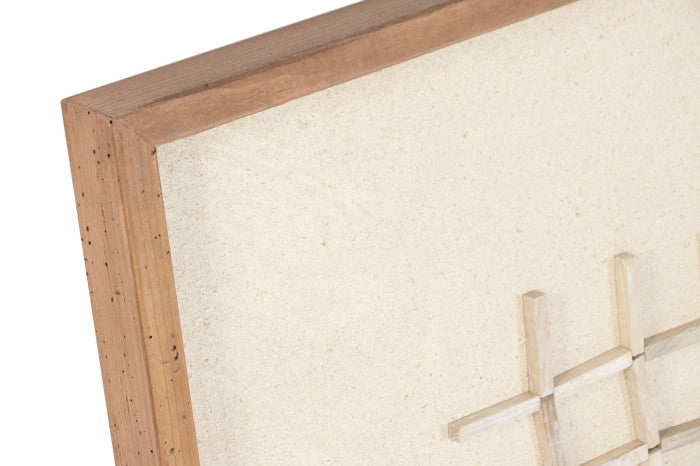 Мade of wooden sticks arranged in a grid over light and dark backgrounds. The left piece feels airy and delicate, while the right one is bold and structured — a balanced contrast suited for refined contemporary interiors