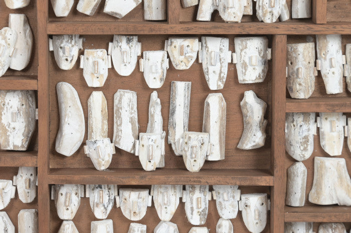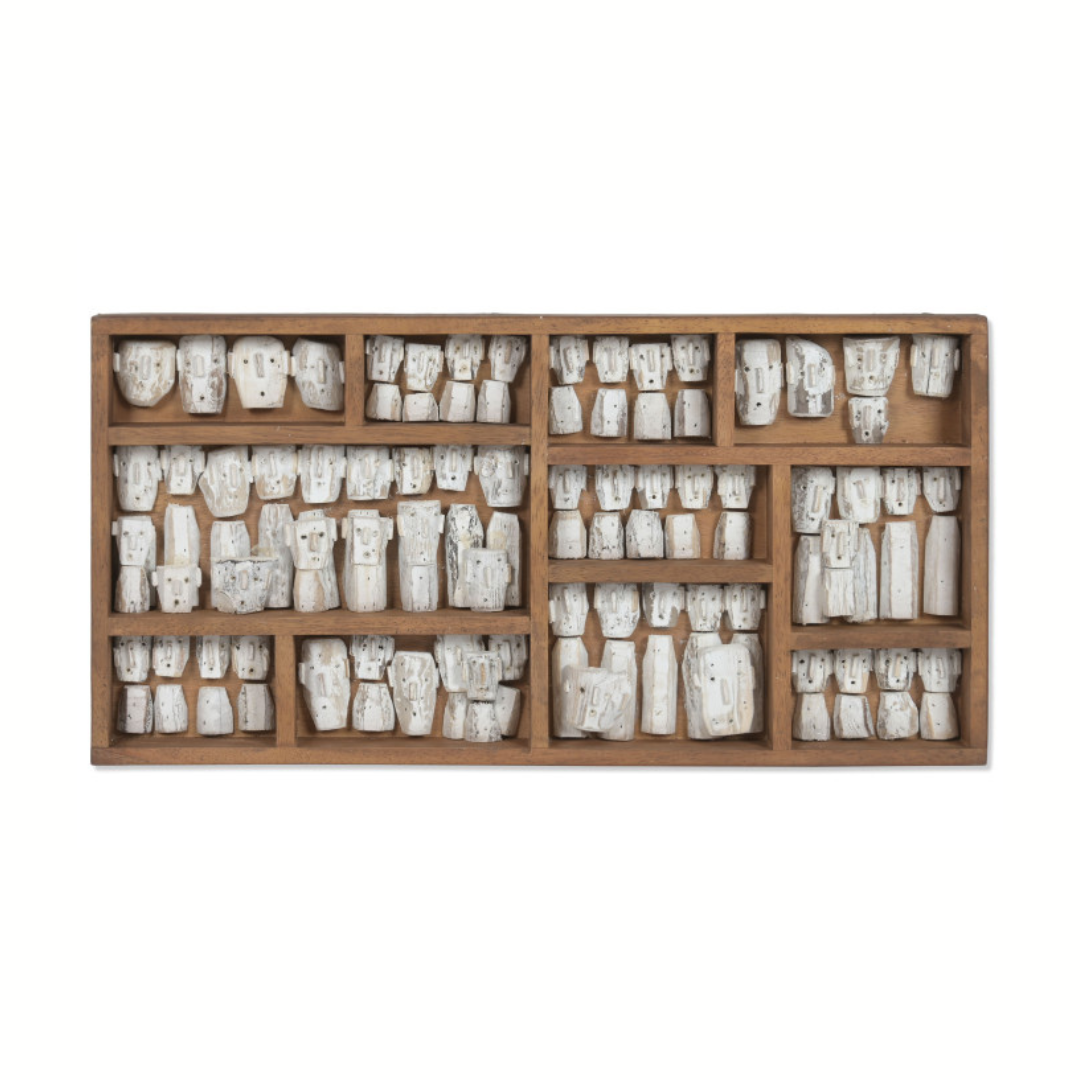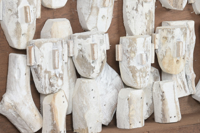 This remarkable wall decoration is entirely handmade and brings together the natural sophistication of solid teak wood with the expressive artistry of miniature sculpted human faces. Each face is individually crafted, capturing subtle features, emotions, and character, transforming the composition into a curated gallery of tiny portraits.