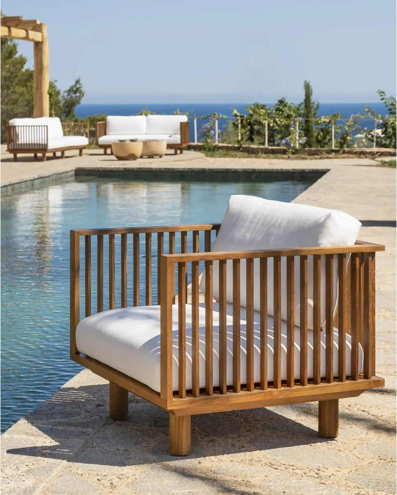 Представяме ви AKAR 1 Seater Sofa, стилно и модерно външно кресло, изработено от рециклирано тиково дърво. Предлага се в естествен или бял цвят, това универсално парче е идеалното допълнение към всяко външно пространство. С множество опции за размер можете да намерите идеалното за вашите нужди. Надстройте живота си на открито с AKAR.