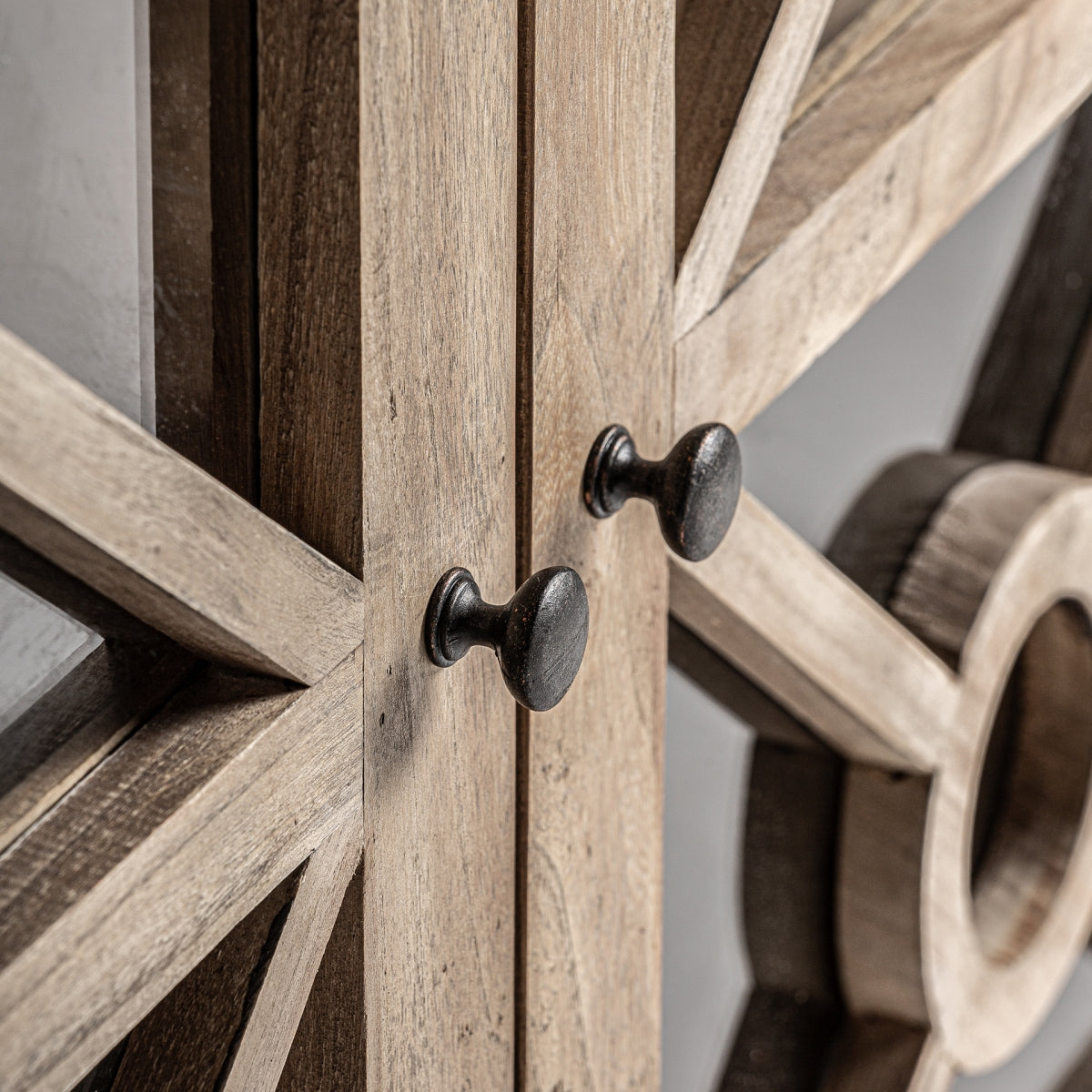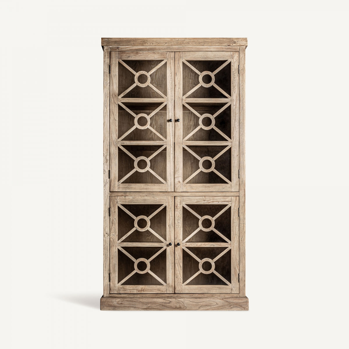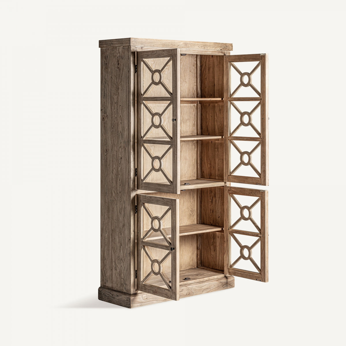 Стъклен шкаф, стил колониален, изработен от брястово дърво в кафяво