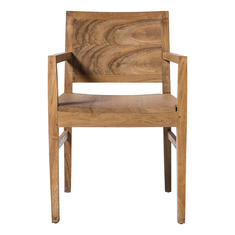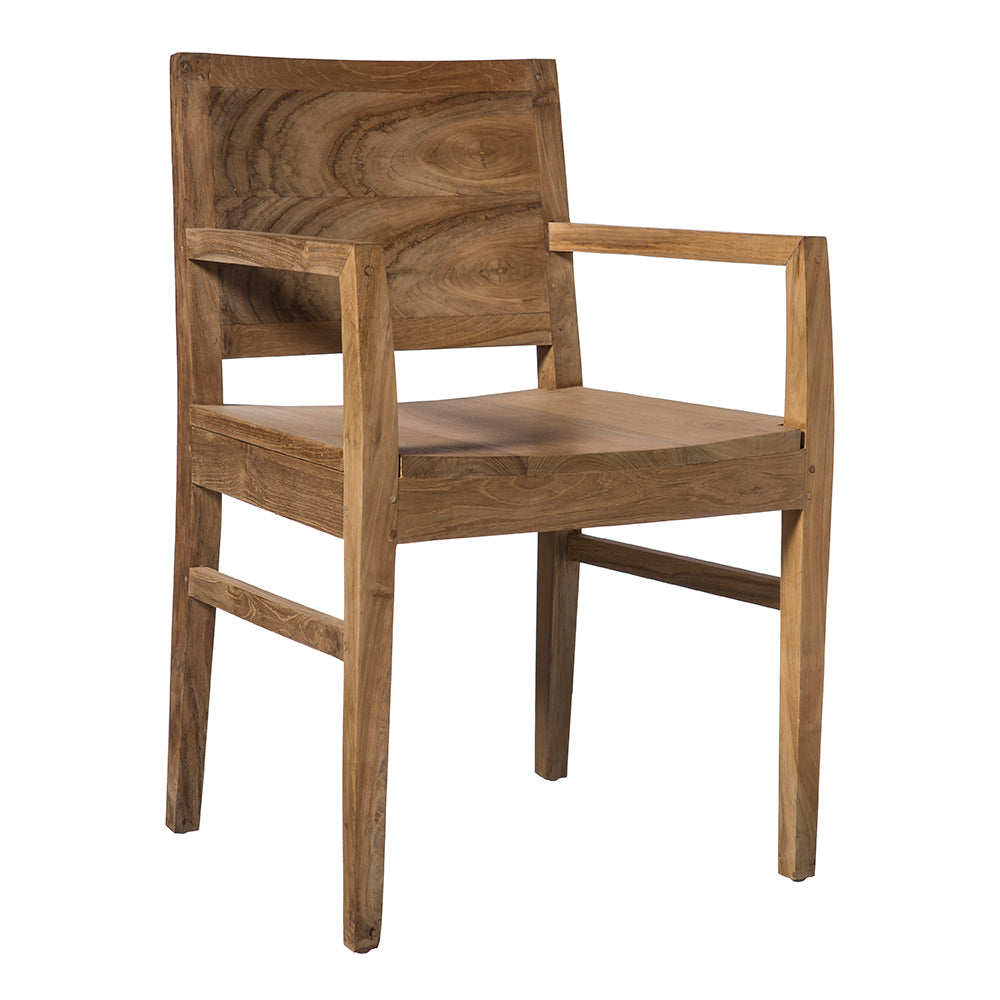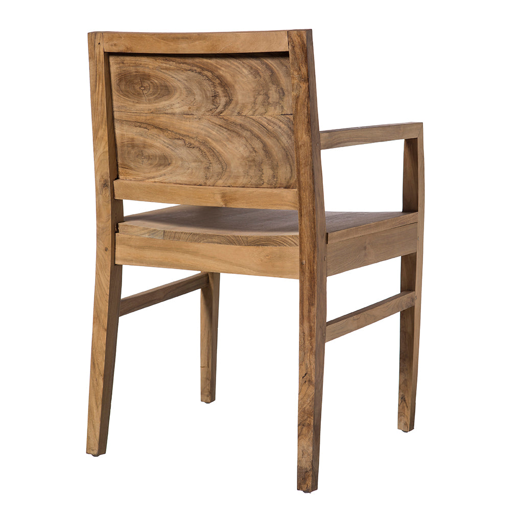 Ръчно изработен стол от тиково дърво с естествено покритие и плетена облегалка. Издръжлив, подреждащ се и проектиран за комфорт, този елегантен предмет съчетава занаятчийска текстура с вечен стил. Подходящ за вътрешна и външна употреба - идеален за трапезарии, вътрешни дворове и изискан интериор.