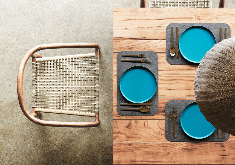 - Външният комплект за хранене се състои от трапезна маса и шест трапезни стола.