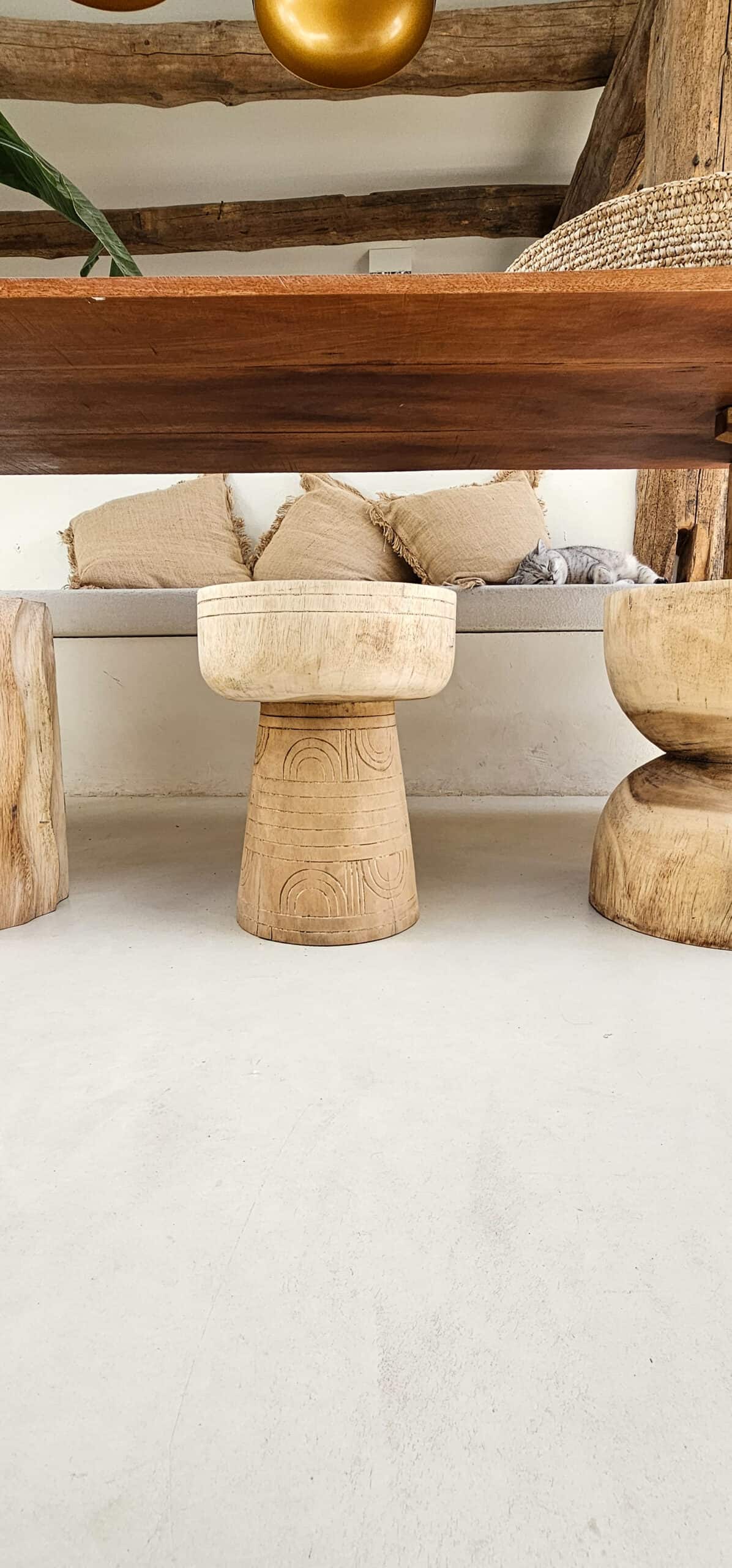 Това има бохо вид поради резбата. Също така е хубаво да поставите различни табуретки на масата за хранене.