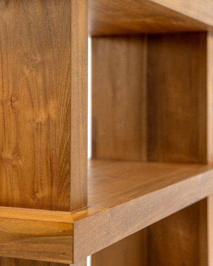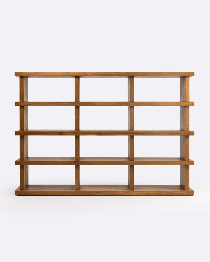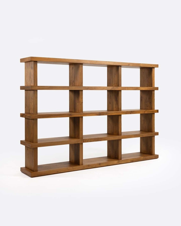Bookshelf XL е впечатляваща мебел, която прави убедителен случай за рециклиран тик и празнува бруталистичния стил. Състои се от дебели хоризонтални масивни рециклирани тикови дъски, които оформят основните рафтове. Те са свързани вертикално с дъски с еднаква дебелина, които действат като опори и създават три просторни отделения във всяка секция. Предлага се в два модела, които могат да се подреждат един върху друг, единият с 3 рафта, а другият с 5 рафта, това е изключително здрава и гъвкава мебел, която може да се използва не само като библиотека, но и като разделител на стая в големи стаи, за да създадете или разграничите различни области