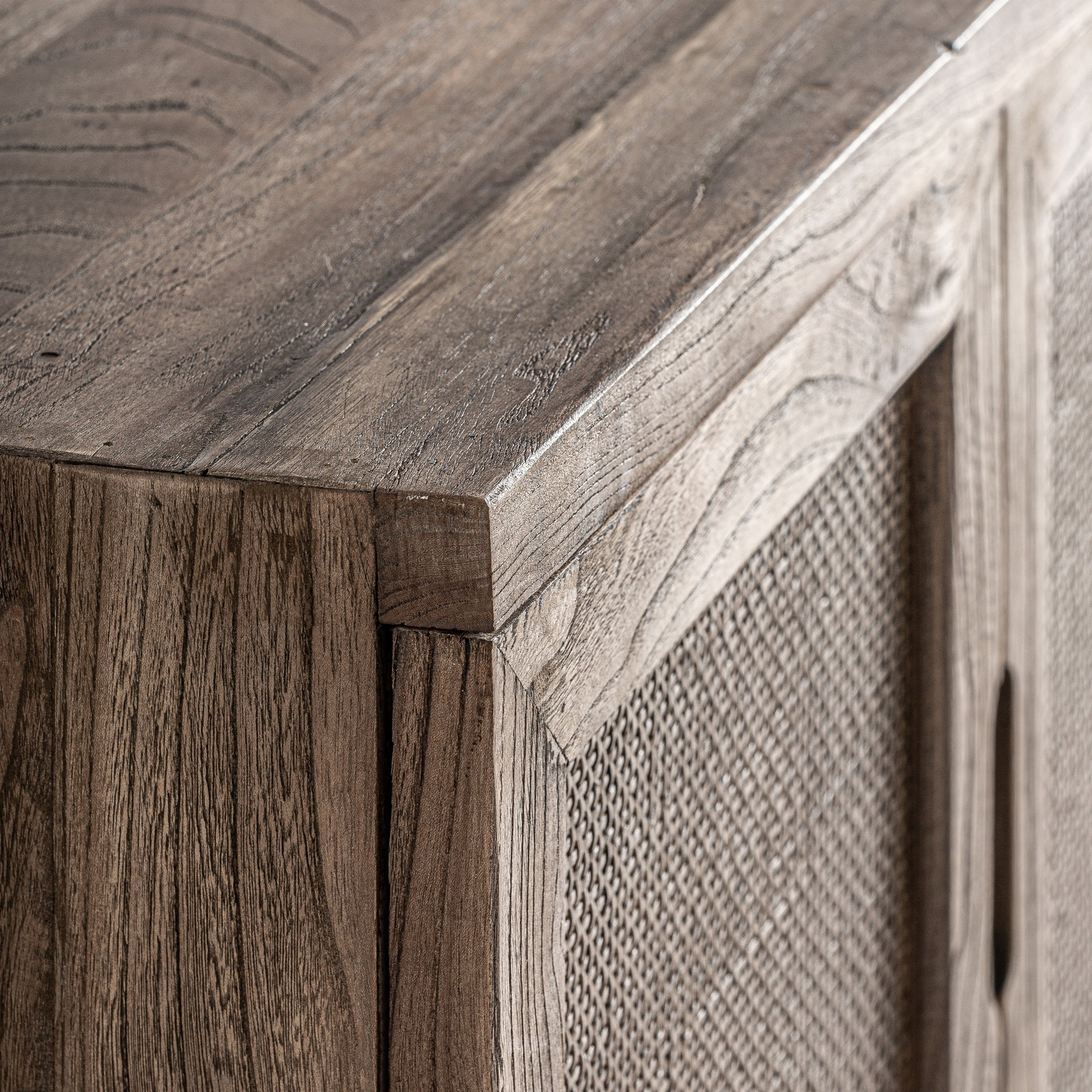 ТВ шкаф Byremo, стилен съвременен, изработен от брястово дърво в кафяво.