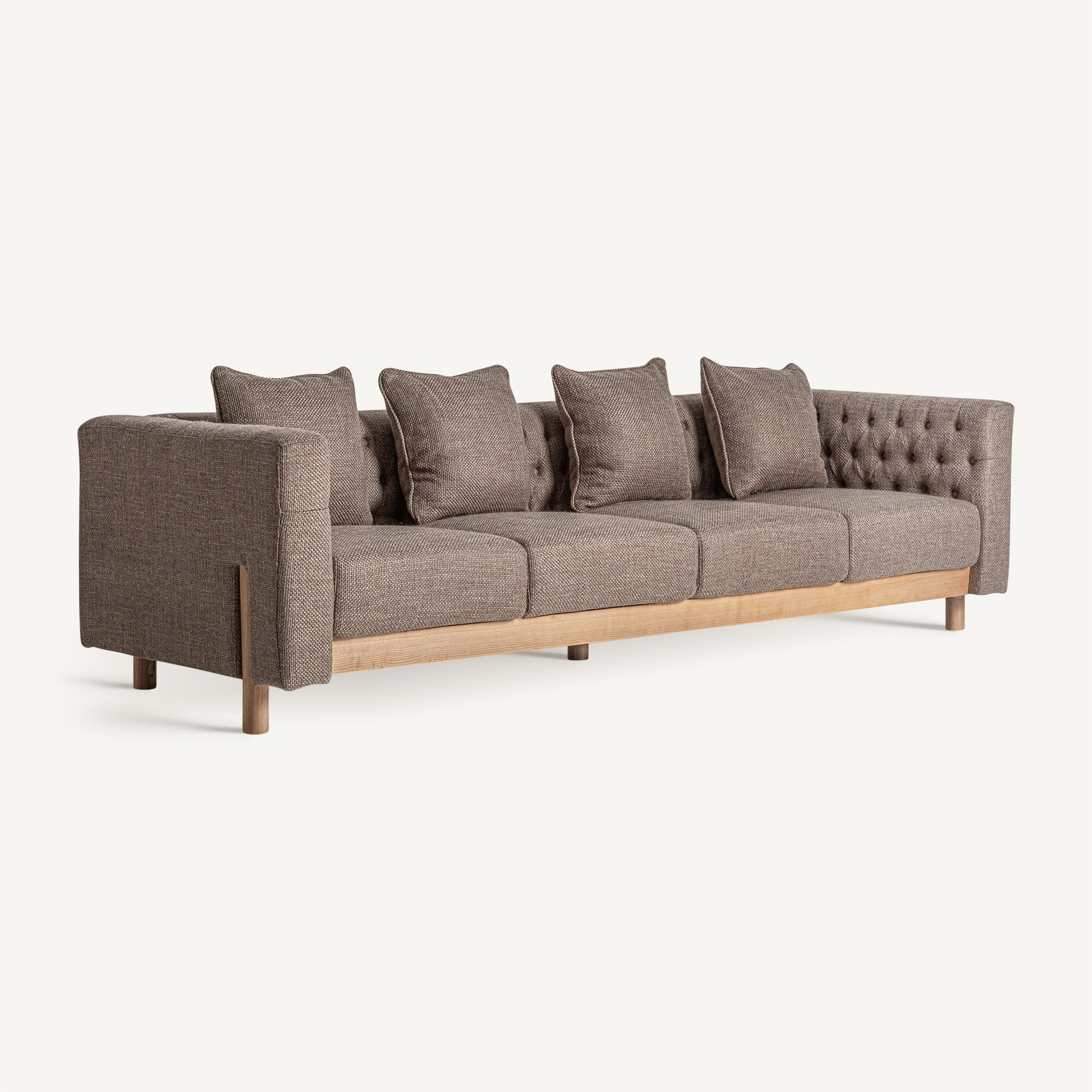 Диванът Carlton от VICAL с пъстра бежова тапицерия съчетава борова дървесина и подвижни възглавници. Предложение в колониален стил, което излъчва комфорт и топлина.