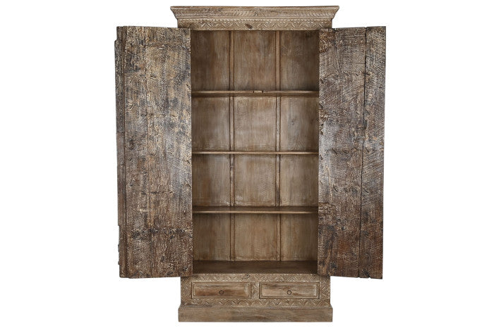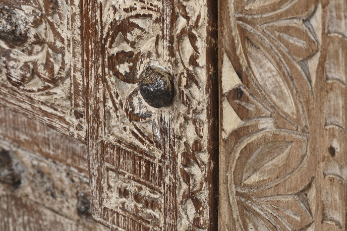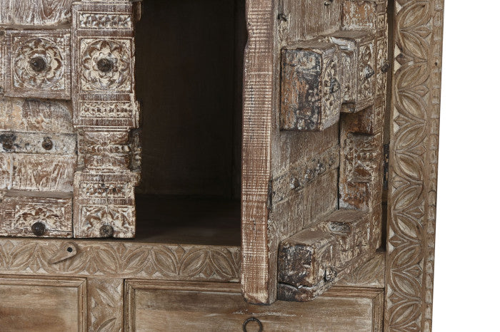 CARVE CLOSET, ръчно изработен от устойчиво тиково дърво, предлага уникално и екологично решение за съхранение. Със своя експертно издълбан дизайн, това многофункционално парче добавя нотка на занаятчийски чар към всяко пространство, като същевременно осигурява функционално затворено съхранение.