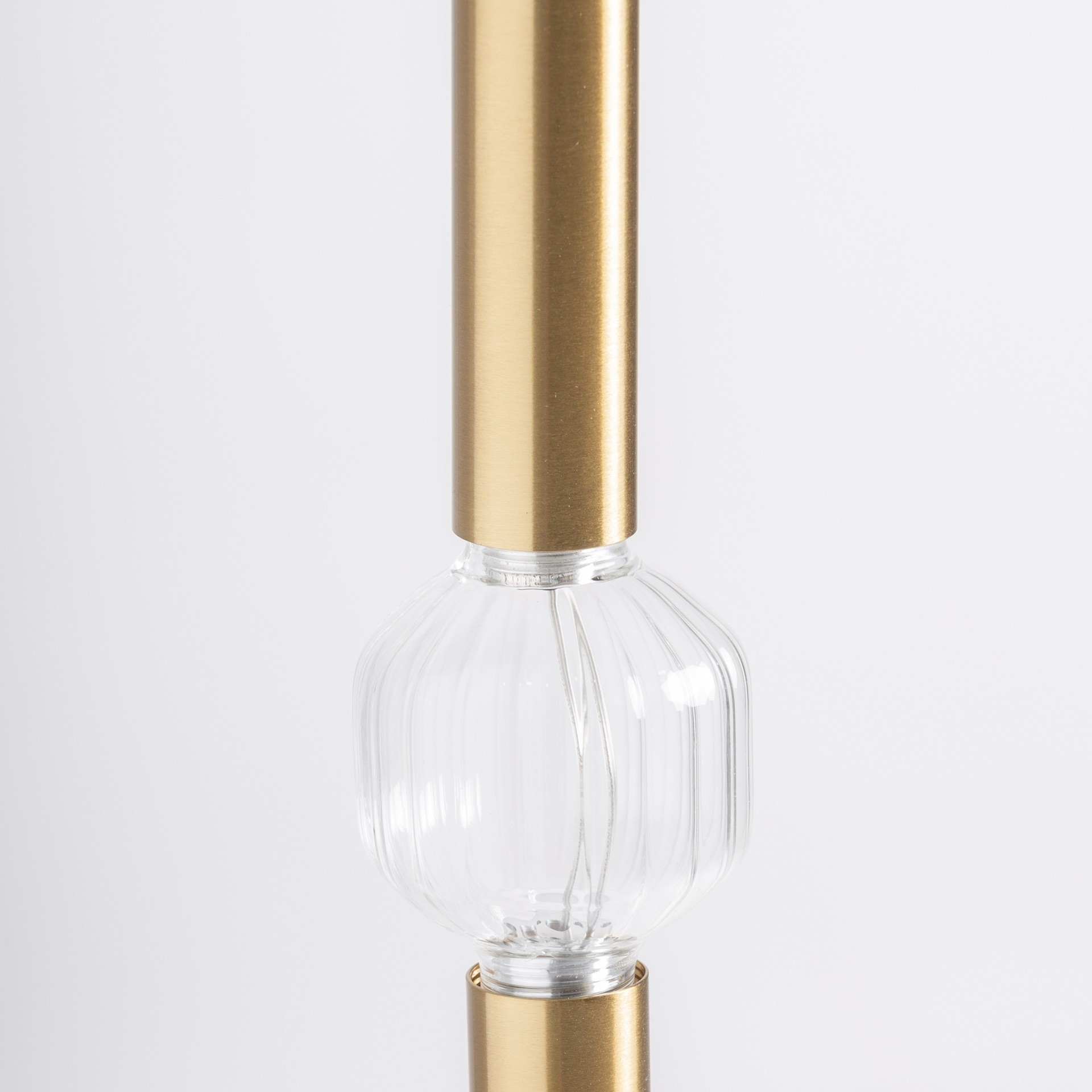 Тази плафонна лампа съчетава прозрачен кристал с бронзова стомана във вертикално наслоена композиция, която създава едновременно модерно и вечно усещане. Взаимодействието между гладко стъкло и топли метални акценти я прави идеална за елегантни интериори, бутикови пространства или дизайнерски шоуруми.
