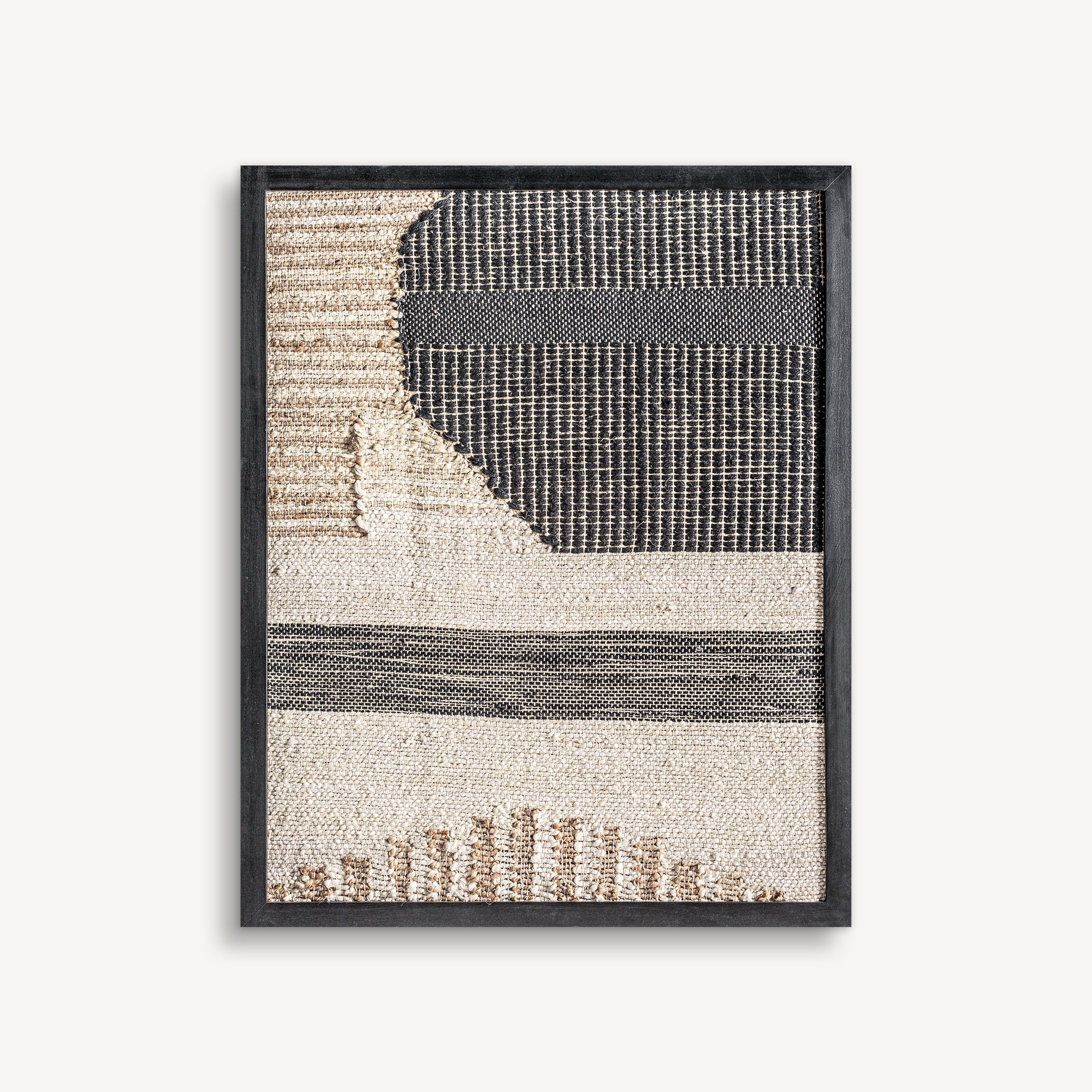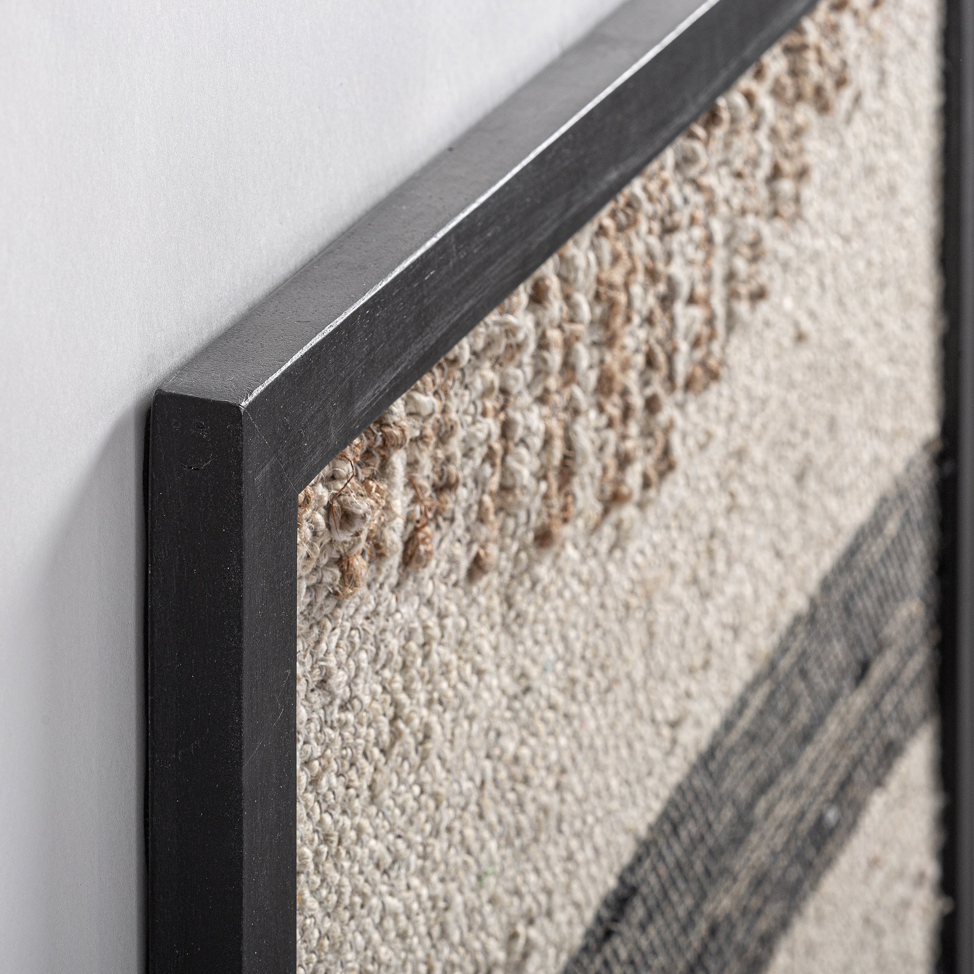 Стенно изкуство Cesc, стил съвременен, изработено от мангово дърво в черно с ръчно изработено покритие, комбинирано с кафява юта и памук в неутрални тонове.