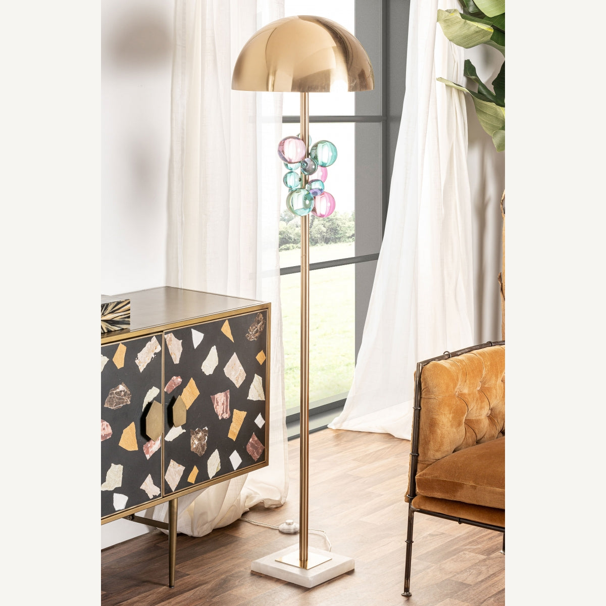 Добавете нотка елегантност към дома си с нашата подова лампа ELEGANT CRISTAL. Тази лампа в стил арт деко е изработена от издръжливо желязо в зашеметяващ многоцветен дизайн, акцентиран с мрамор и кристал. Освен това може да се отделя за лесно персонализиране. Осветете вашето пространство със стил и функционалност.