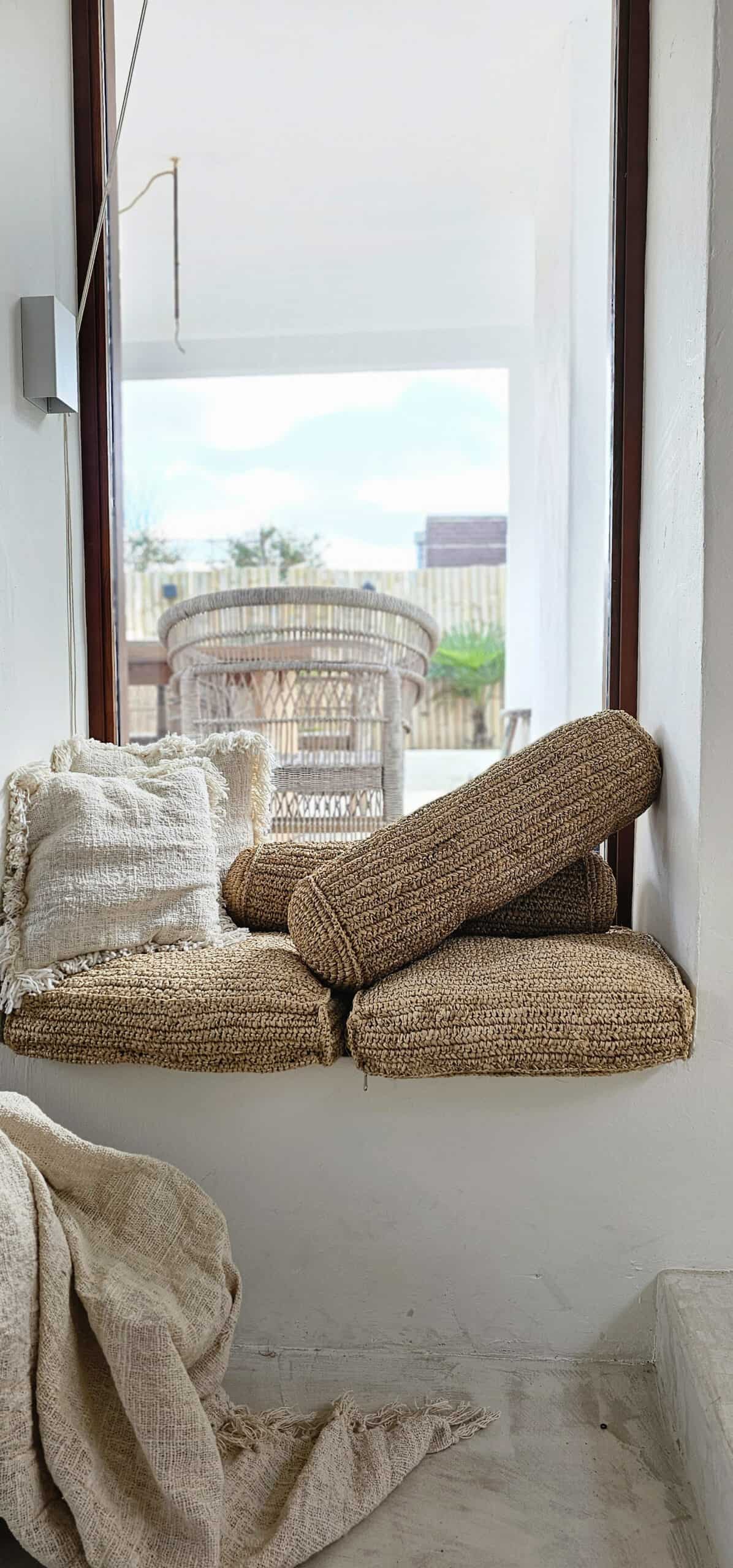 Комбинирайте го добре с други възглавници от сезал, рафия и/или лен.