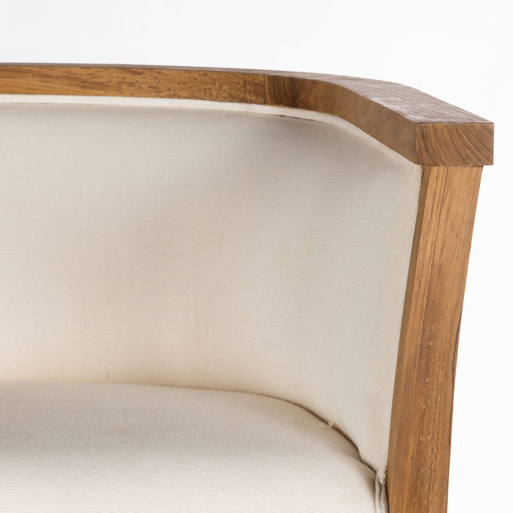 Това елегантно кресло е експертно изработено от висококачествено тиково дърво, осигуряващо както издръжливост, така и красива естетика. Памучният материал добавя нотка мекота и комфорт, което го прави идеалното допълнение към всяко жилищно пространство. Насладете се на луксозното изживяване на креслото David.