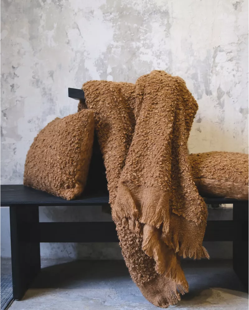 DHANA е перфектната комбинация от мекота, топлина и вечен дизайн. Това семейство възглавници и одеяла, предлагани в четири внимателно подбрани цвята, се отличават с букле текстура, която приканва към допир и комфорт. Със своята гъвкава и елегантна естетика, DHANA добавя характер и хармония, превръщайки всяко пространство в уютно убежище.