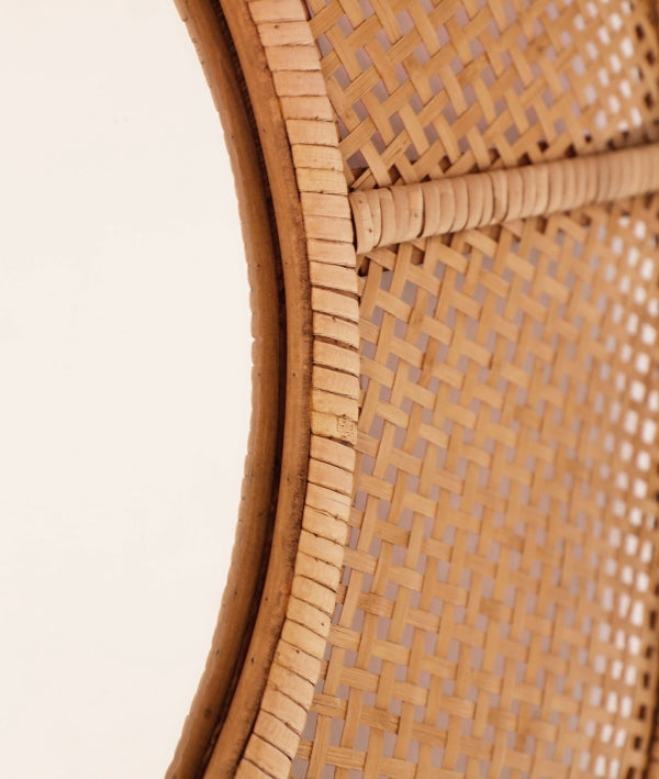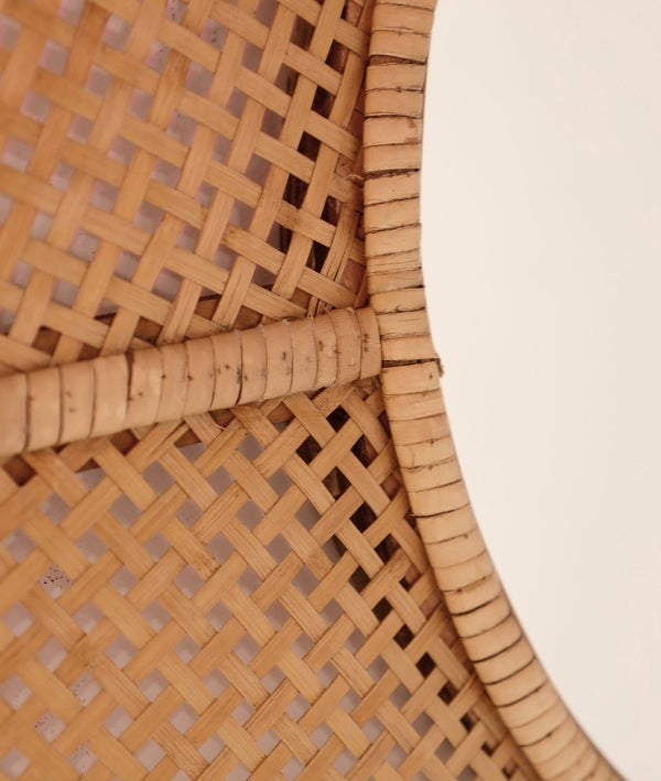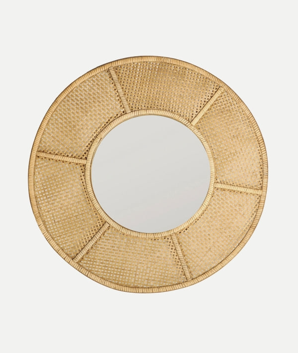 Огледало кръгло enzo, стил бохо, изработено от бамбук в светло кафяво, комбинирано с огледало
