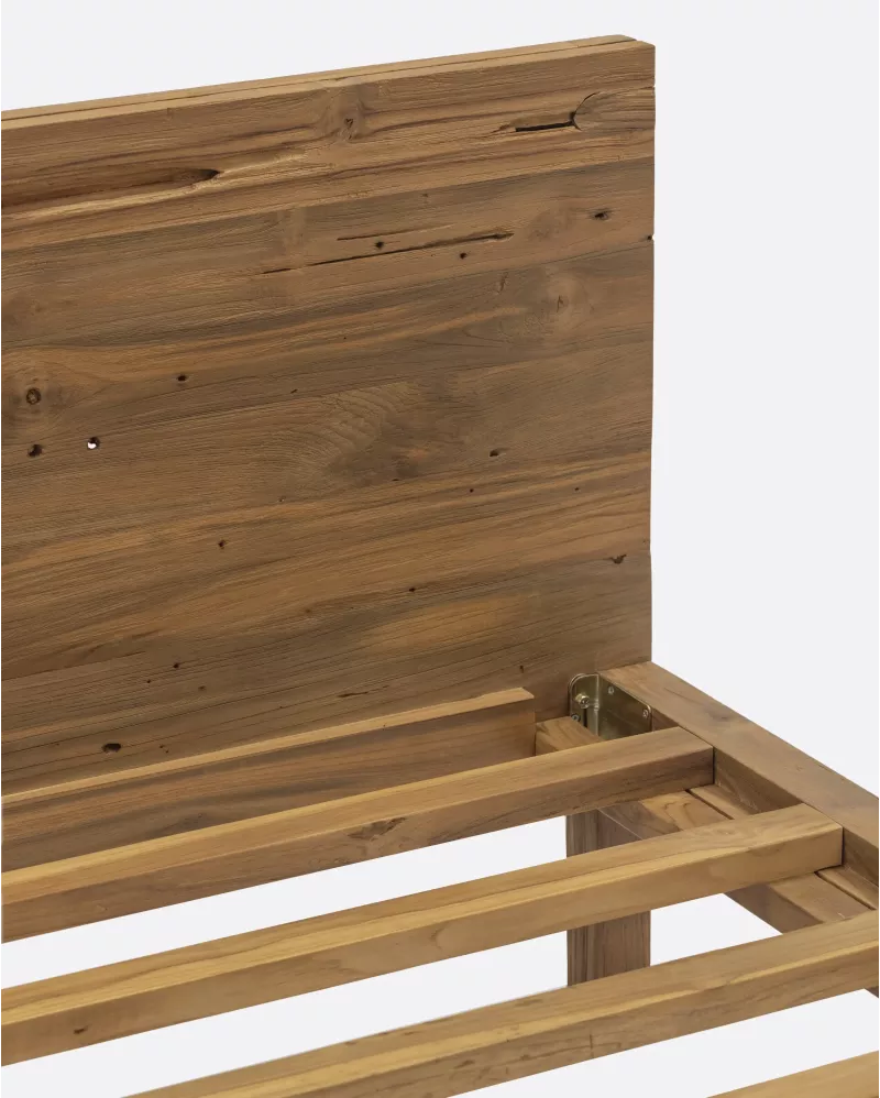 - Ще харесате леглото EROSI 180 заради неговия семпъл и автентичен декоративен стил. Легло, изработено от естествено рециклирано тиково дърво, с рустик стил и прави линии. С основа от естествено тиково дърво, която позволява на матрака да диша от двете страни през цялата година, както и осигурява гъвкавост при лягане. То принадлежи към семейството EROSI, характеризиращо се с използването на благородни и устойчиви материали, украсени с безпогрешните следи от ерозията на времето. Легло от тиково дърво, възстановено от стари неизползвани сгради в Индонезия, което му придава автентична индивидуалност, въпреки простотата на дизайна му. Перфектното легло от рециклирано тиково дърво, което допълва нощното шкафче и гардероба EROSI от същото семейство, създавайки рустикална спалня с устойчив дизайн. Идеално за матраци с максимална дебелина 20 см.