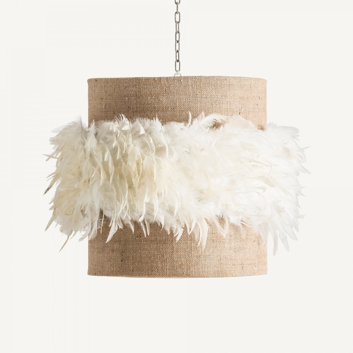 Вдъхновена от очарованието на провансалската романтика, висящата лампа Airole от VICAL внася мекота и причудливост във всеки интериор. Цилиндричният ѝ абажур, изработен от кремав полиестер, е обгърнат от лента от ефирни бели пера, създавайки нежно взаимодействие на текстура и светлина. Окачена на верига, тази лампа извиква топлина и изтънченост, идеална за спокойни спални, поетични салони или бутикови пространства за хотелиерство, търсещи нотка грациозна ексцентричност.