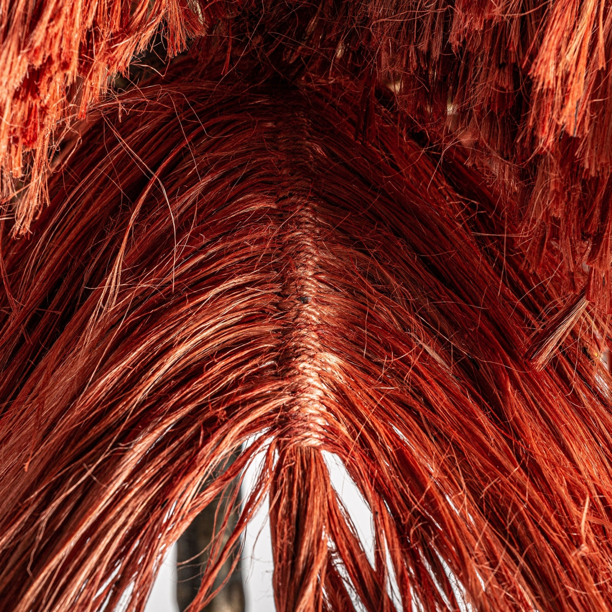 Подова лампа ферсит, стил арт деко, изработена от естествени влакна в оранжево, комбинирани с алуминий и желязо. Продуктът е разглобяем.