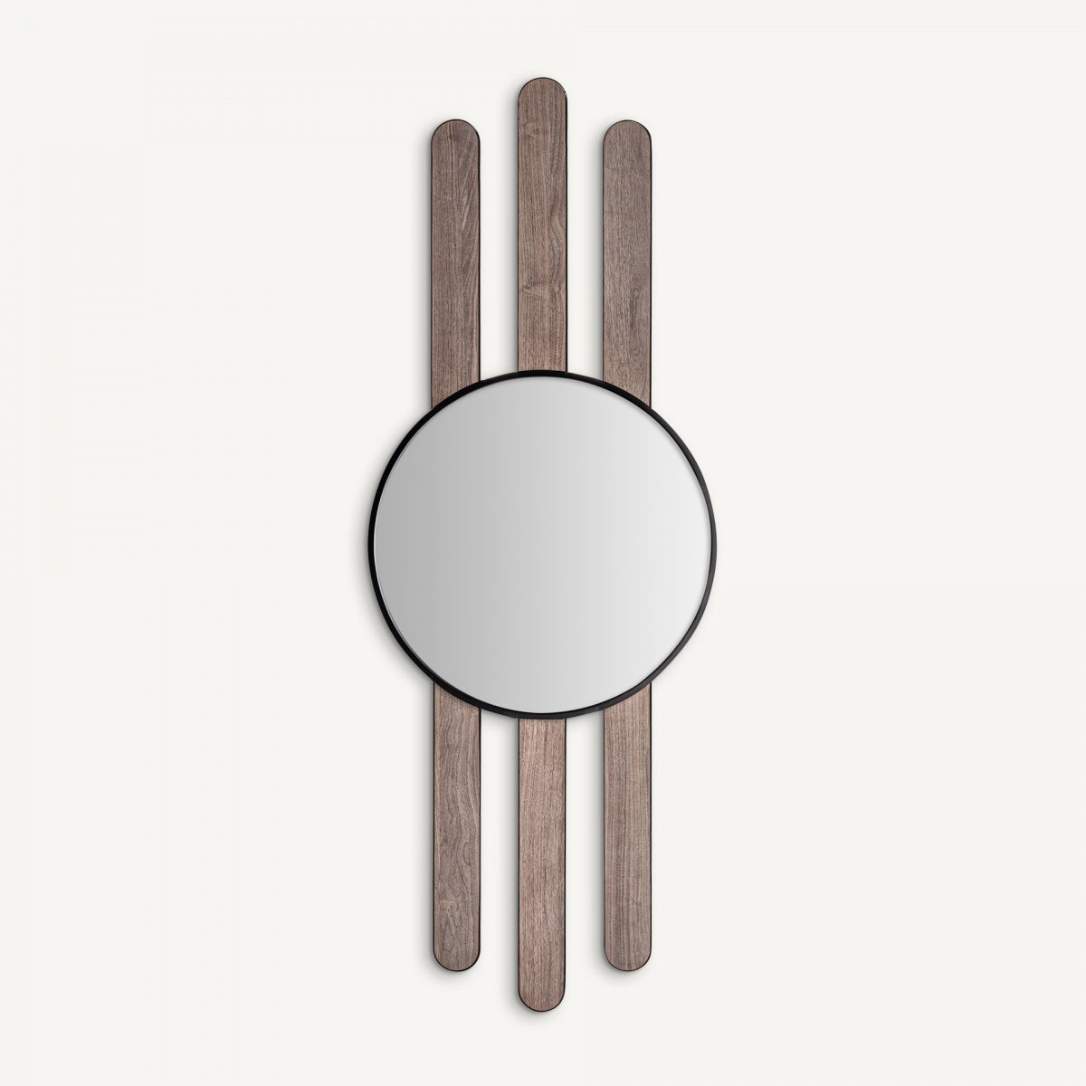 Огледало Finbar, стил класика, изработено от MDF дърво в кафяво, комбинирано с черно желязо и огледало.