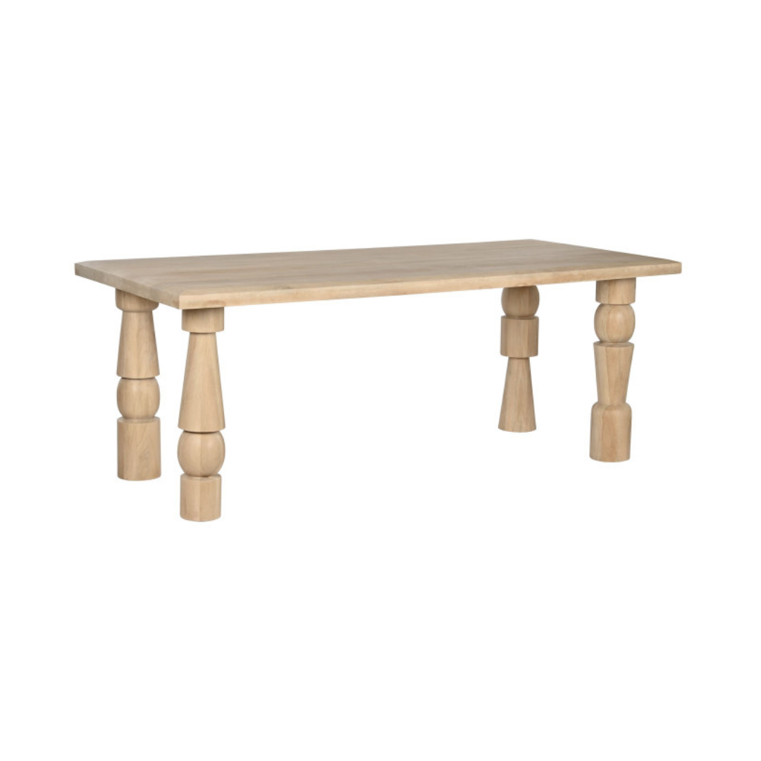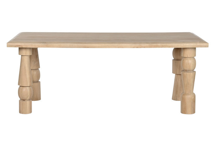 Изработени от масивно тиково дърво, те се отличават с артистичен силует, съставен от подредени цилиндрични и конични сегменти. Тази скулптурна конструкция добавя визуален интерес и характер, като същевременно осигурява стабилност и здравина. Естествената текстура и топлият тон на тиковото дърво подчертават ръчно изработените детайли, превръщайки всеки крак в декоративен акцент.
