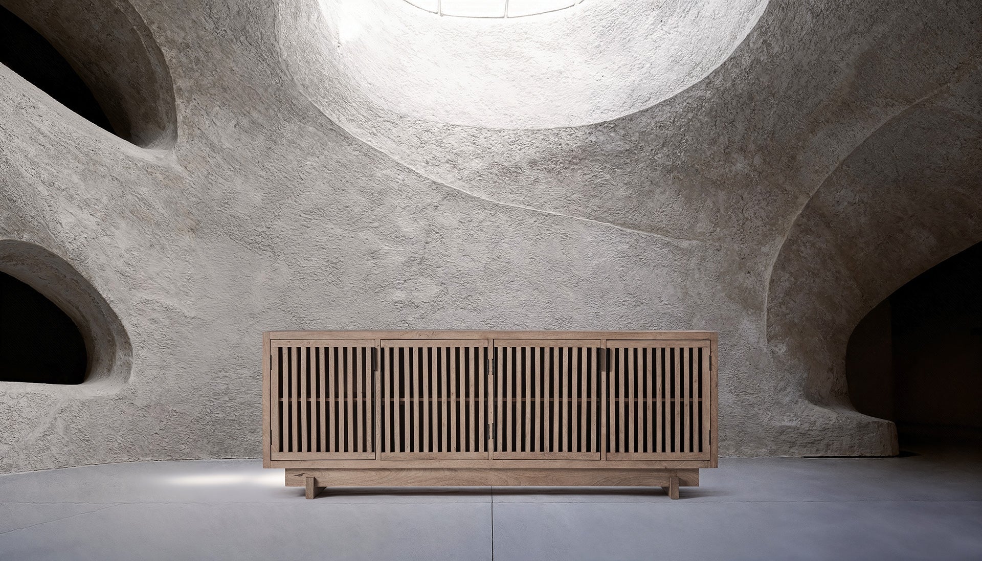 Бюфетът GÀBIA от VICALDESIGN, проектиран от Пеп Грамаж, внася усещане за спокойствие в пространството. С балансирани хоризонтални пропорции и врати с ламели от мангово дърво, той съхранява, без да излага на показ, организирайки със сдържана елегантност. Мебел, която превръща безредието в спокойствие и трансформира всяка стая в съвременно убежище.