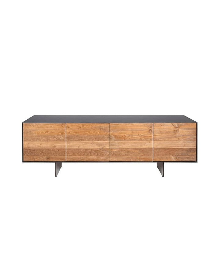 - GEOX 208, внушителен бюфет от естествено рециклирано тиково дърво и желязо. С рустикален завършек, големи пропорции и много индивидуалност, които му придават страхотно присъствие във всяка стая. Той е част от колекцията GEOX, която се характеризира с корпуси от масивно рециклирано тиково дърво, покрития в рустик стил, които запазват оригиналната текстура и детайли от черно желязо, които му придават този модерен и скандинавски щрих. Истинско произведение на дизайна, а също и много функционално, благодарение на своите просторни вътрешни отделения, желязната облицовка около бюфета и двата крака с ламели, които го отделят от пода. Всяко парче е ръчно изработено от нашите опитни занаятчии от желязо и тиково дърво, устойчиво регенерирани от стари сгради в Ява, Индонезия. Идеален за входни антрета и големи дневни, където всеки предмет, който поставите, ще умножи красотата си