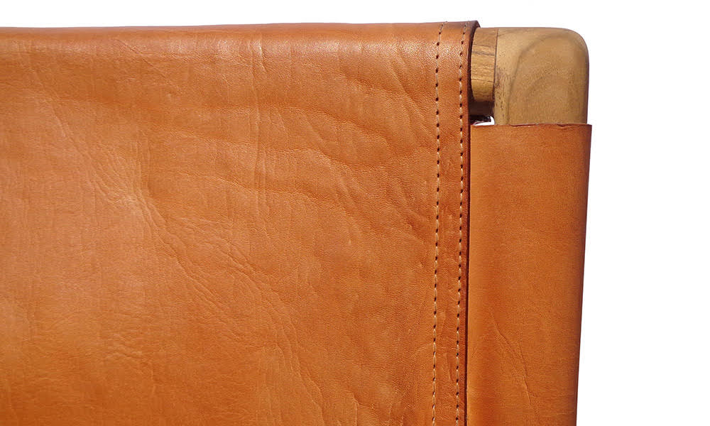 Материал : структура от тиково дърво/кожена седалка и облегалка