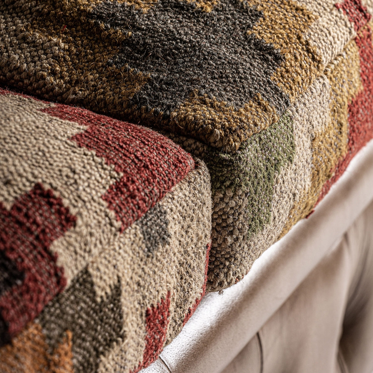 Диван Hebburn, стил винтидж, изработен от кожа в камила, съчетана с борова дървесина. Продуктът се разглобява.