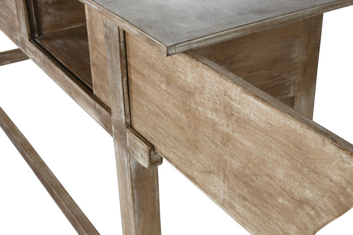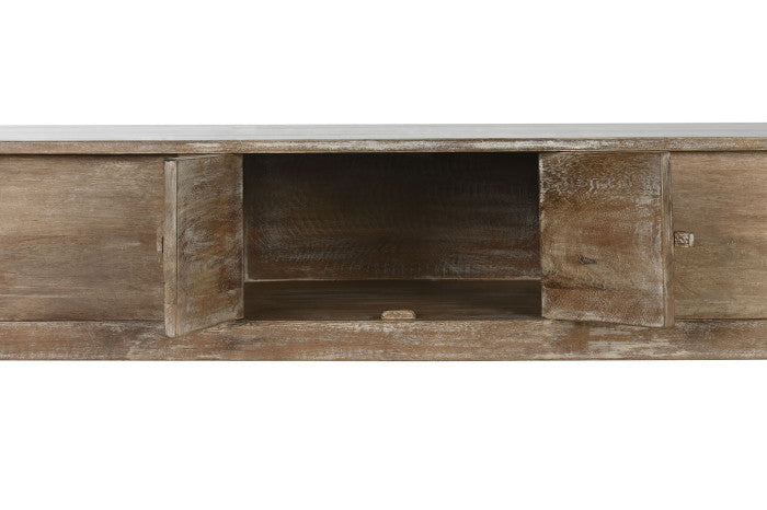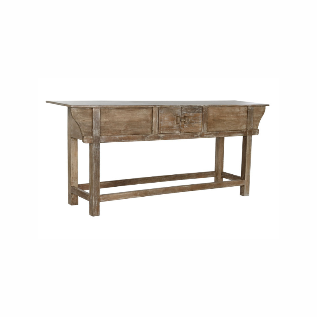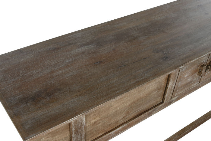 Конзолната маса HINDU 185 см е изработена от висококачествено мангово дърво, известно със своята издръжливост и богата шарка. Тази маса съчетава здрава конструкция с естествена красота, предлагайки топло и елегантно допълнение към всяко пространство. Изисканият ѝ дизайн обогатява както съвременния, така и традиционния интериор с трайно качество и чар.