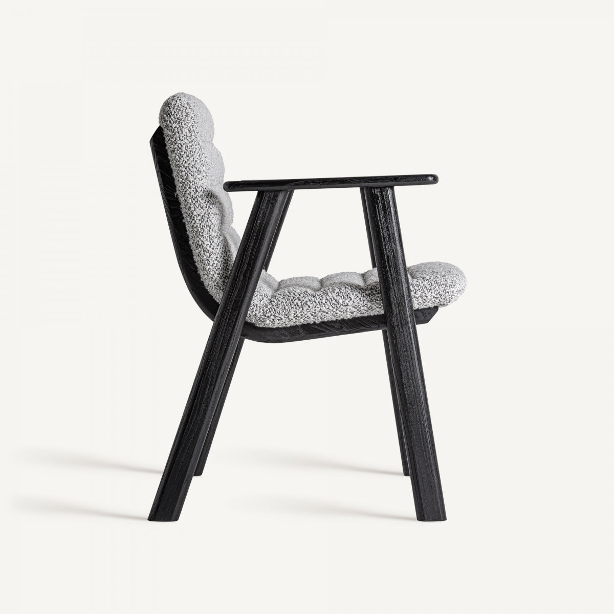 Жакардов стол, стил съвременен, изработен от дъбова дървесина в черно, комбинирана със сив полиестер.