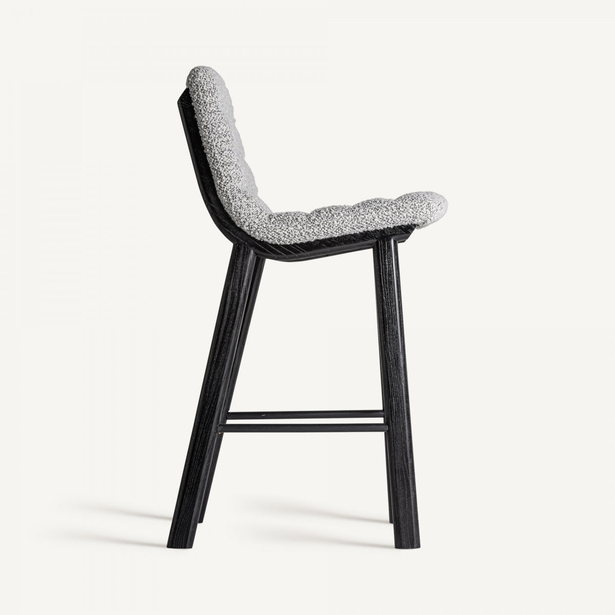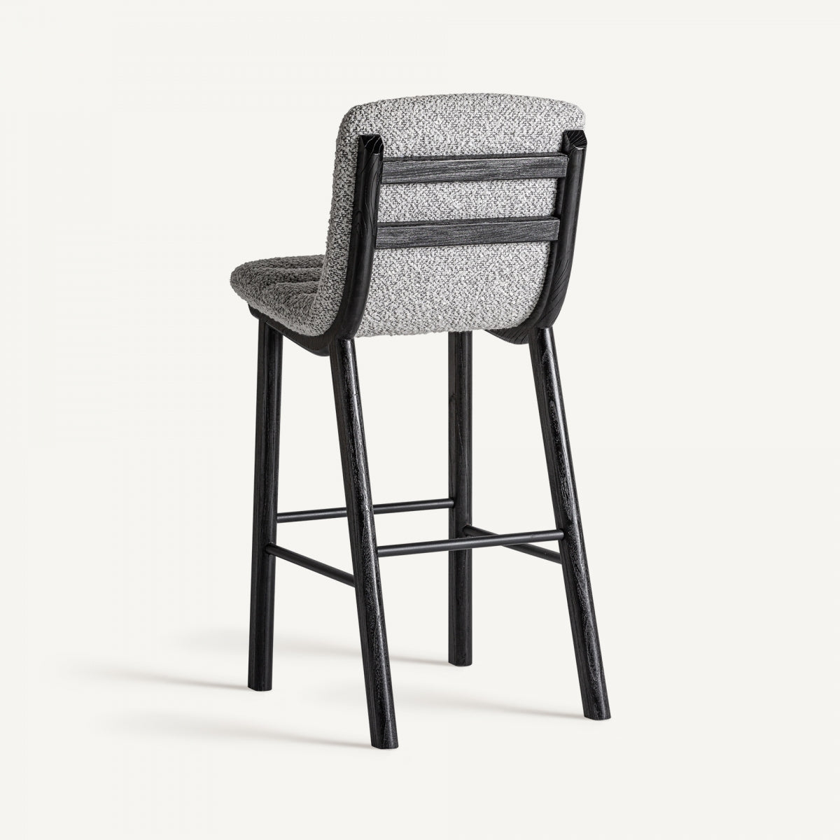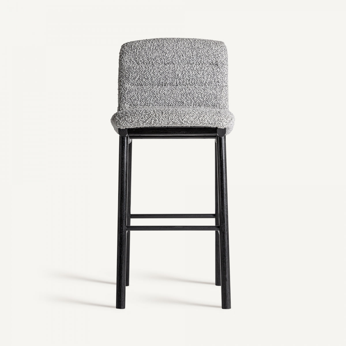 Жакардова табуретка, стил съвременен, изработена от дъбова дървесина в черно, комбинирана със сив полиестер.