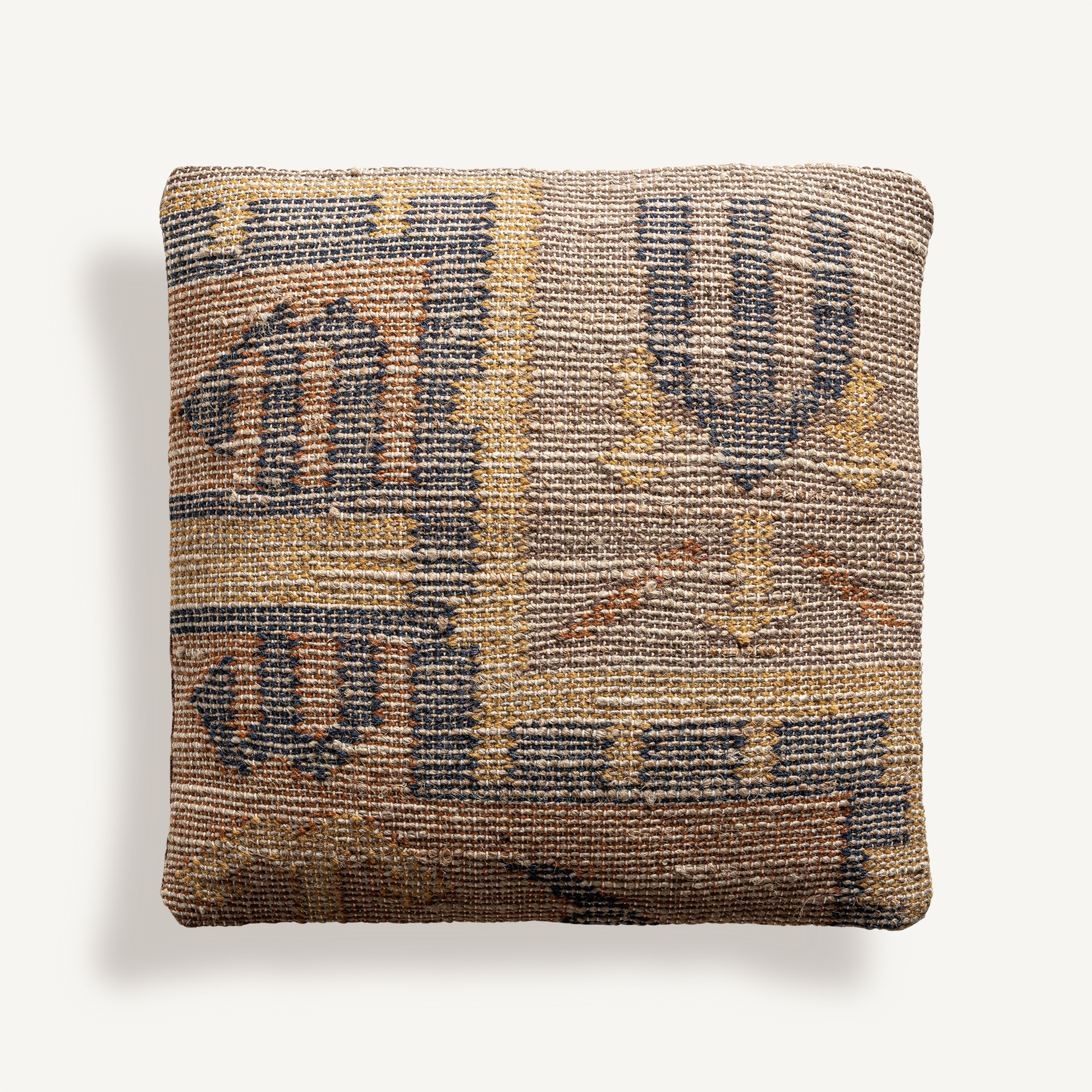 Племенно вдъхновение и естествено усещане във всеки детайл. Възглавницата Jelkie съчетава щампован памук и юта в кафяви тонове, предлагайки декоративно изделие, изпълнено с нюанси и визуално разказване на истории.