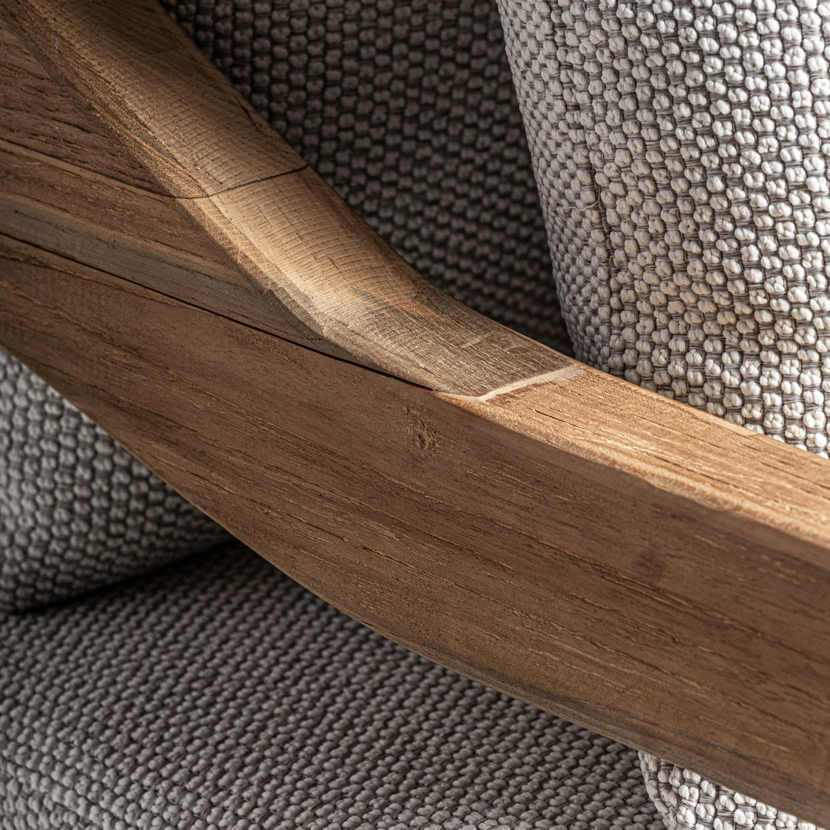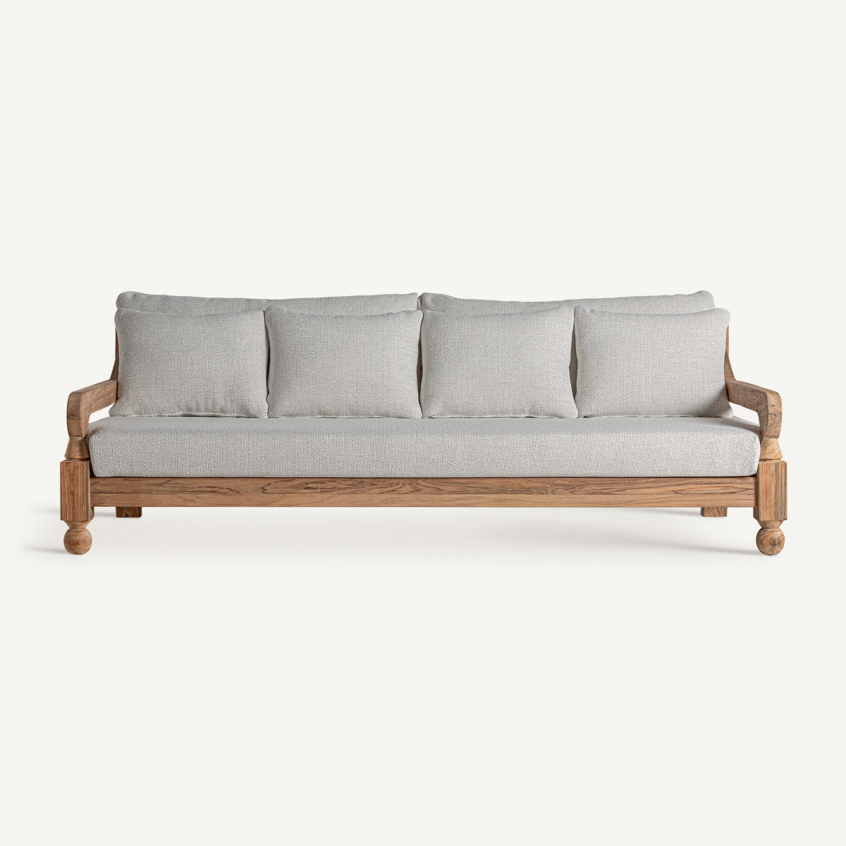 Диван Джодхпур, колониален стил, изработен от железопътна дървесина в кафяво с естествено покритие, комбинирана с бял рециклиран полипропилен и пяна. Продуктът е разглобяем, сваляем. Съвместим с: 34420,34834.