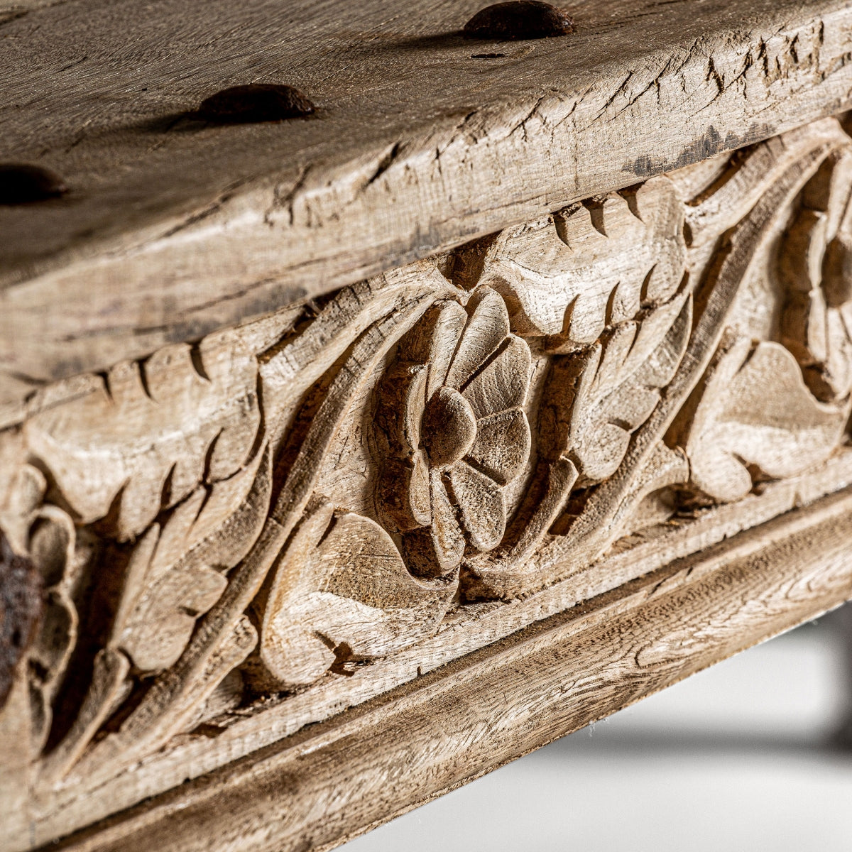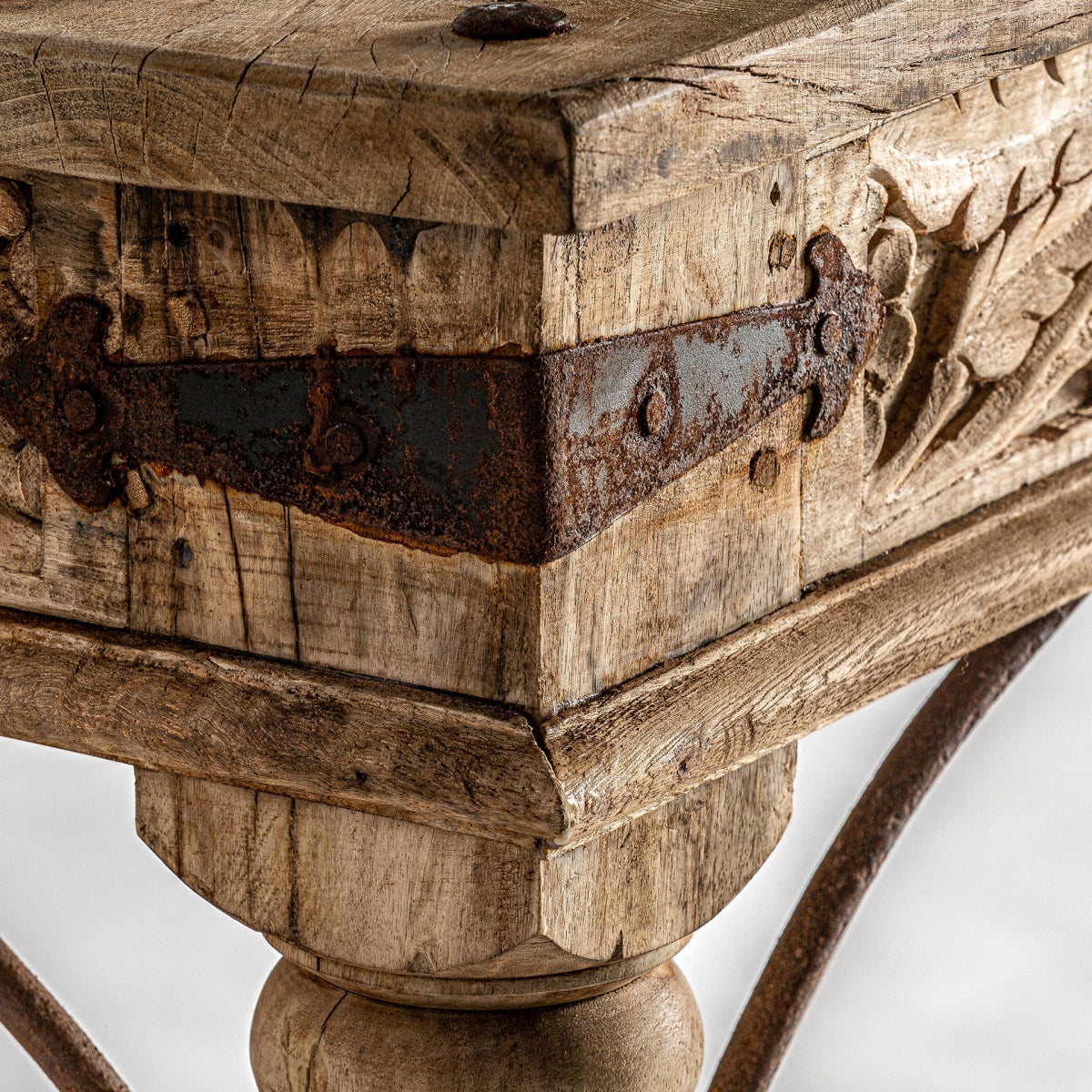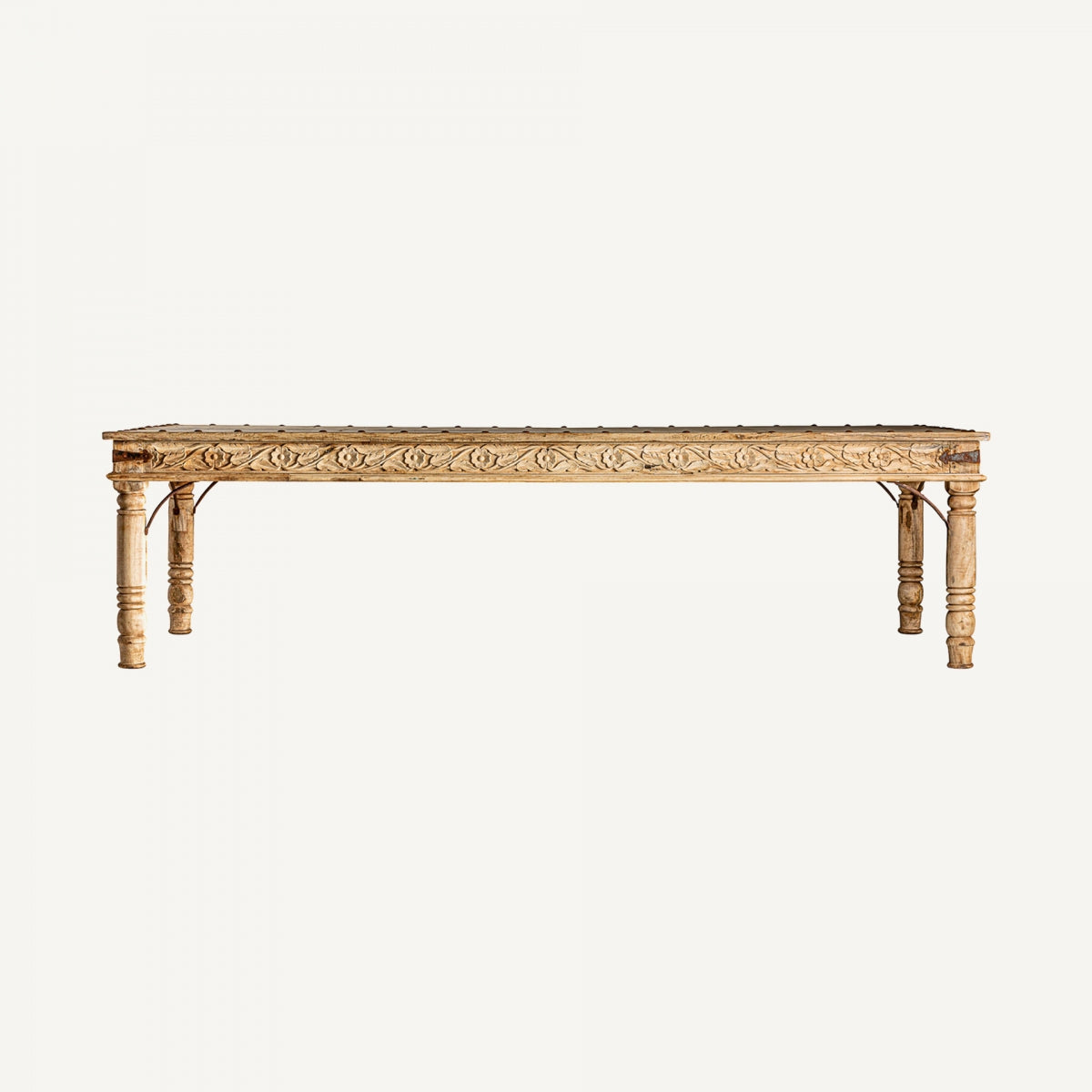Трапезна маса Kalyan, стил етническа, изработена от мангово дърво в кафяво с изтрито покритие.