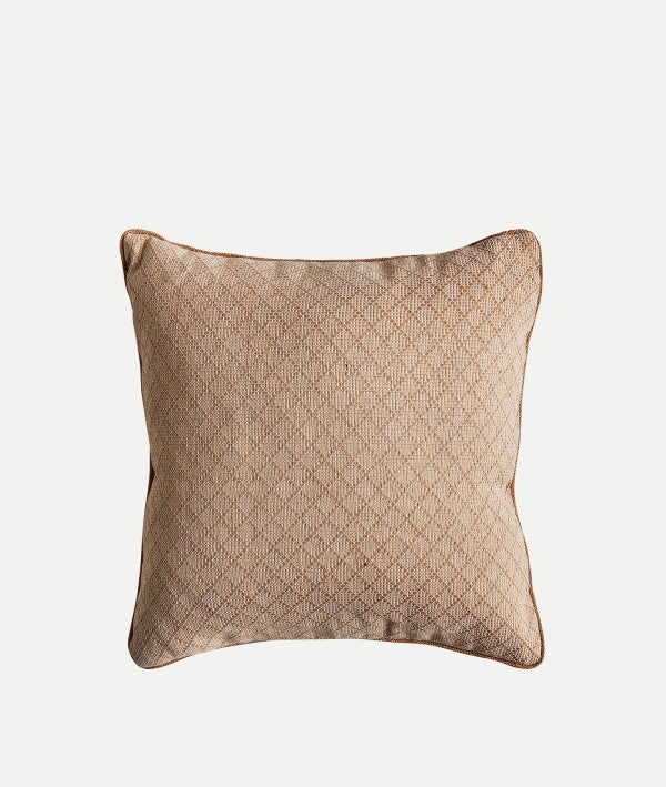 Квадратна възглавница келиър, стил съвременен, изработена от юта в бежово, комбинирана с памук и полиестер. Продуктът е сваляем.