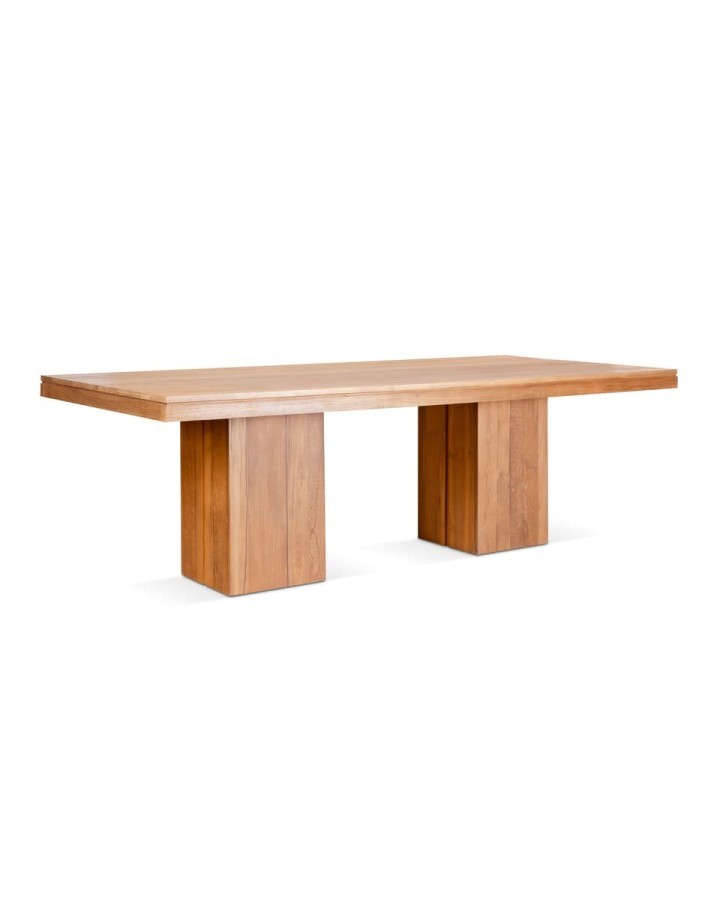 Трапезната маса KERBANG е основен елемент във всяка трапезария. Произведен в щателен ръчно изработен процес, с естествено рециклирано тиково дърво, той се превръща в уникален и устойчив елемент. Неговият минималистичен дизайн му позволява да се адаптира към множество стилове и пространства, както и да бъде универсален артикул по отношение на декорацията, която го придружава в пространството.