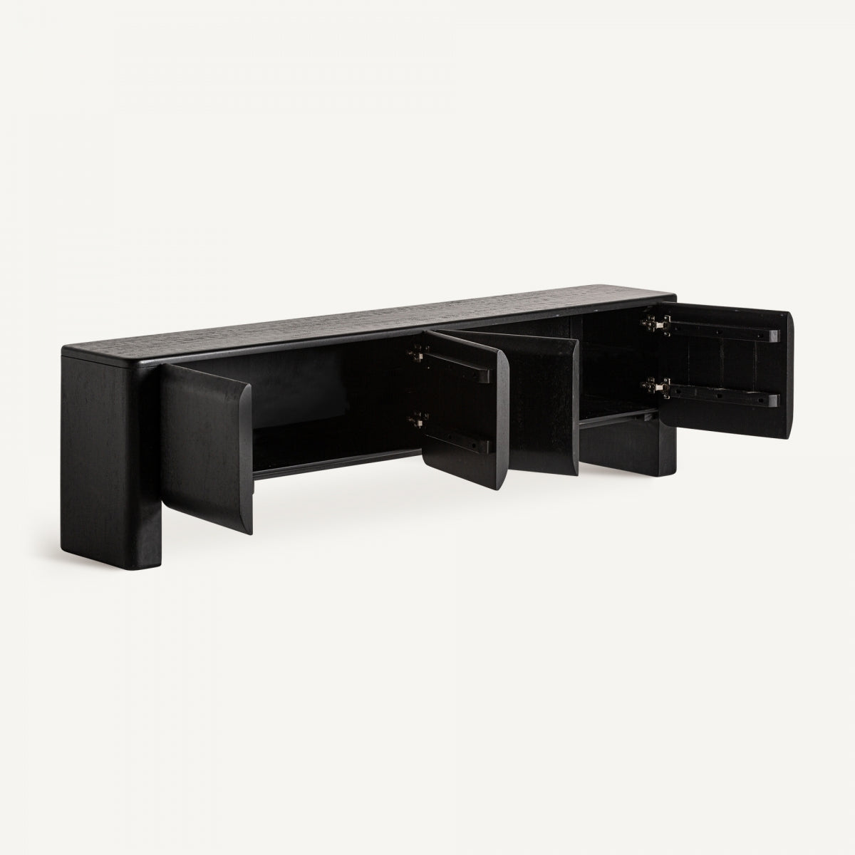ТВ шкаф NORFOLK, стил арт деко, изработен от мангово дърво в черно.