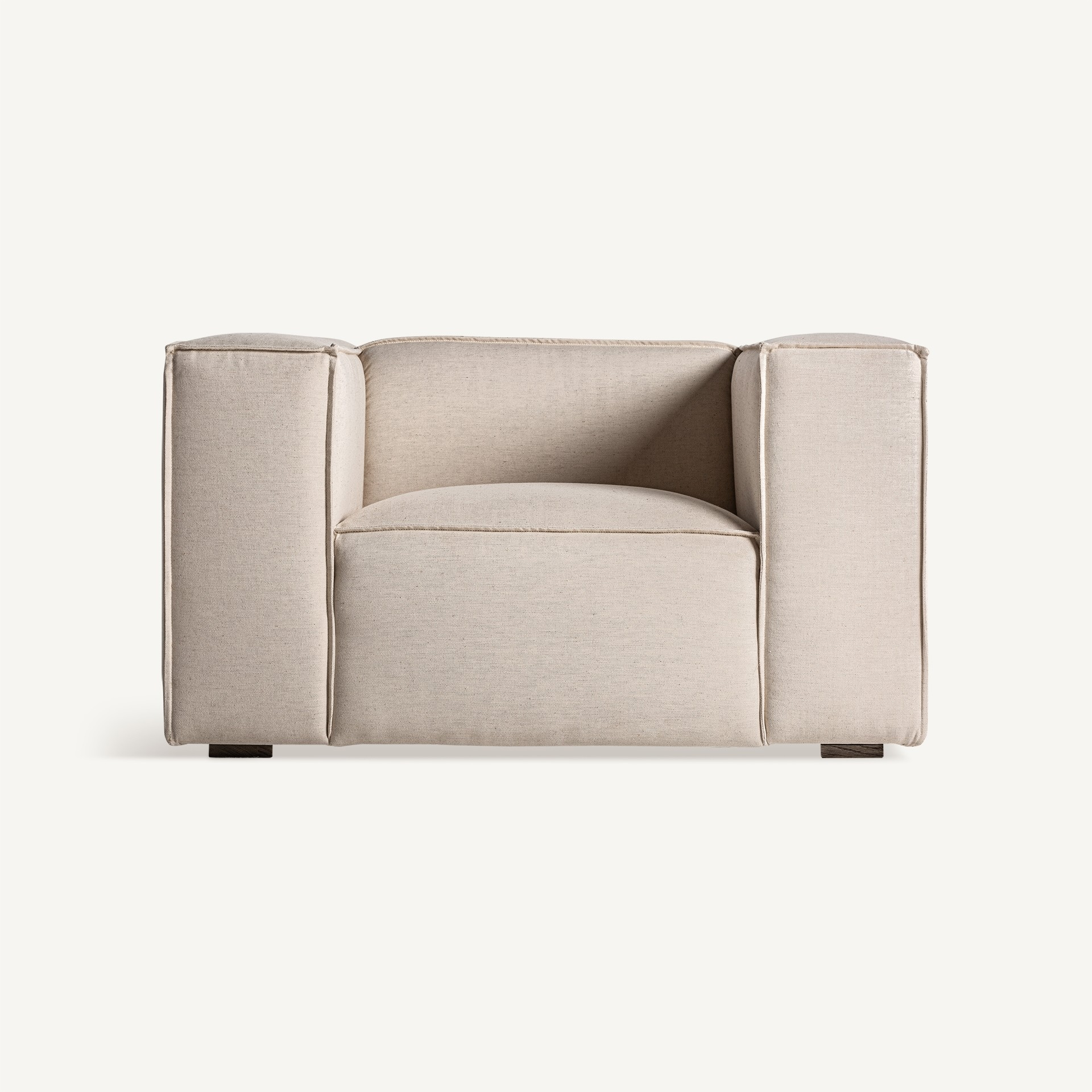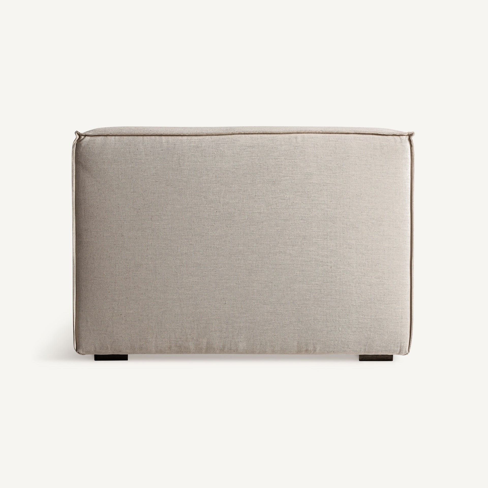 Изработена от ясенова дървесина в кафяво, комбинирана с бежов памук и бежов лен. Продуктът е подвижен.