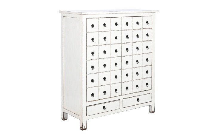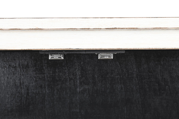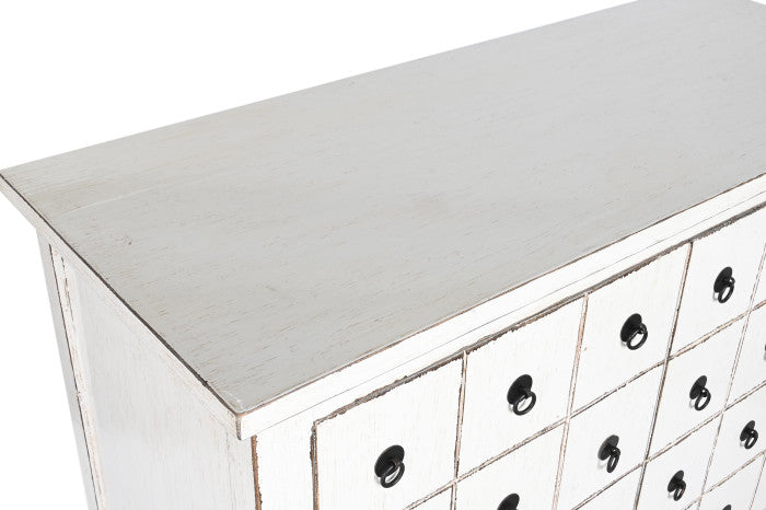 Този шкаф е оборудван с няколко единици за съхранение, украсени с великолепни месингови дръжки и аксесоари: 2 врати (ефект „чекмедже“), отварящи се на 3 нива за съхранение и 2 чекмеджета, което ви гарантира идеално място за съхранение.