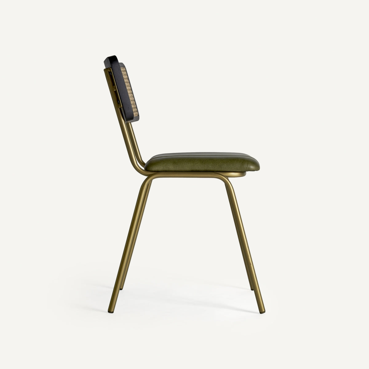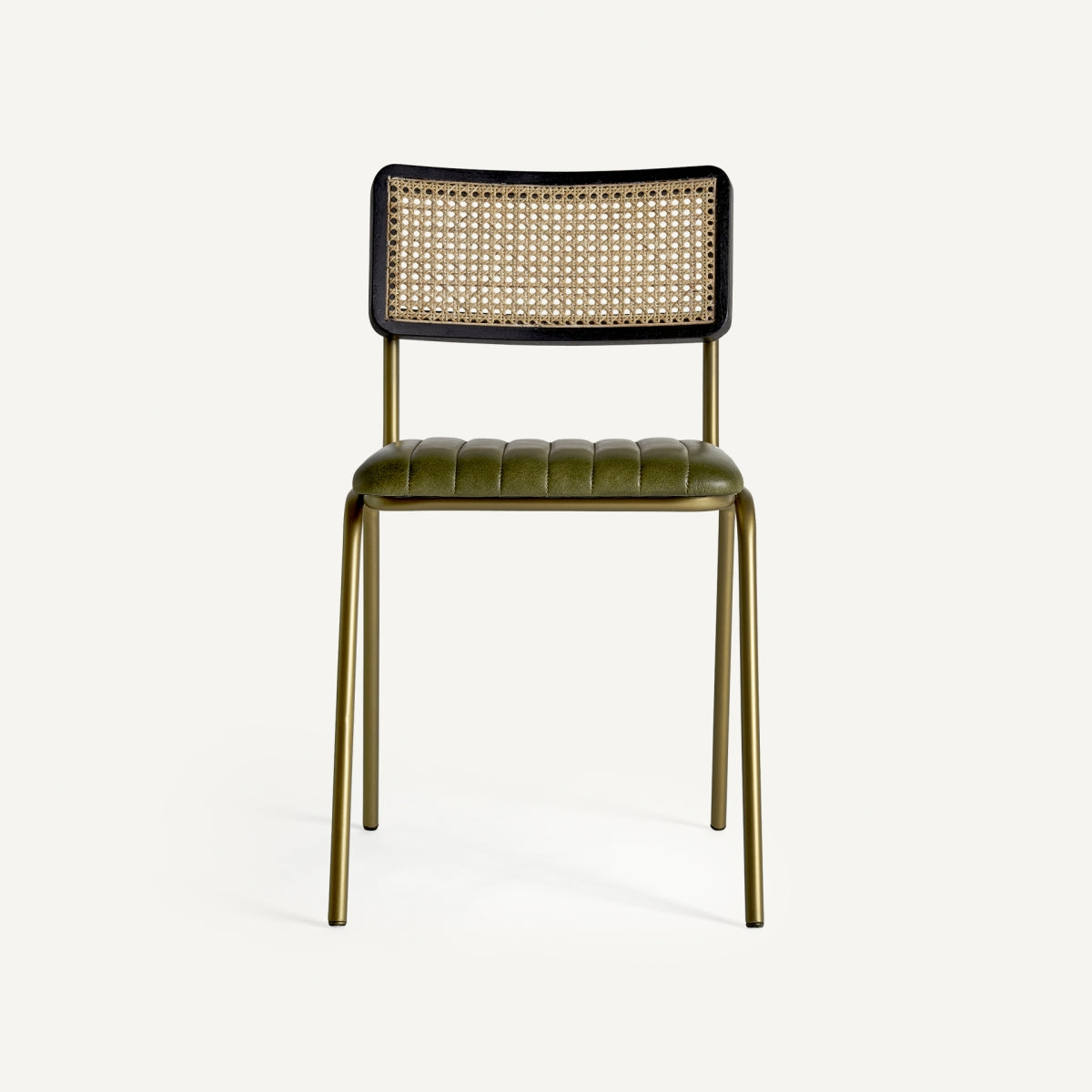 материал; КОЖА в ЗЕЛЕН цвят/ЖЕЛЯЗО в ЗЛАТЕН цвят/РАТАН