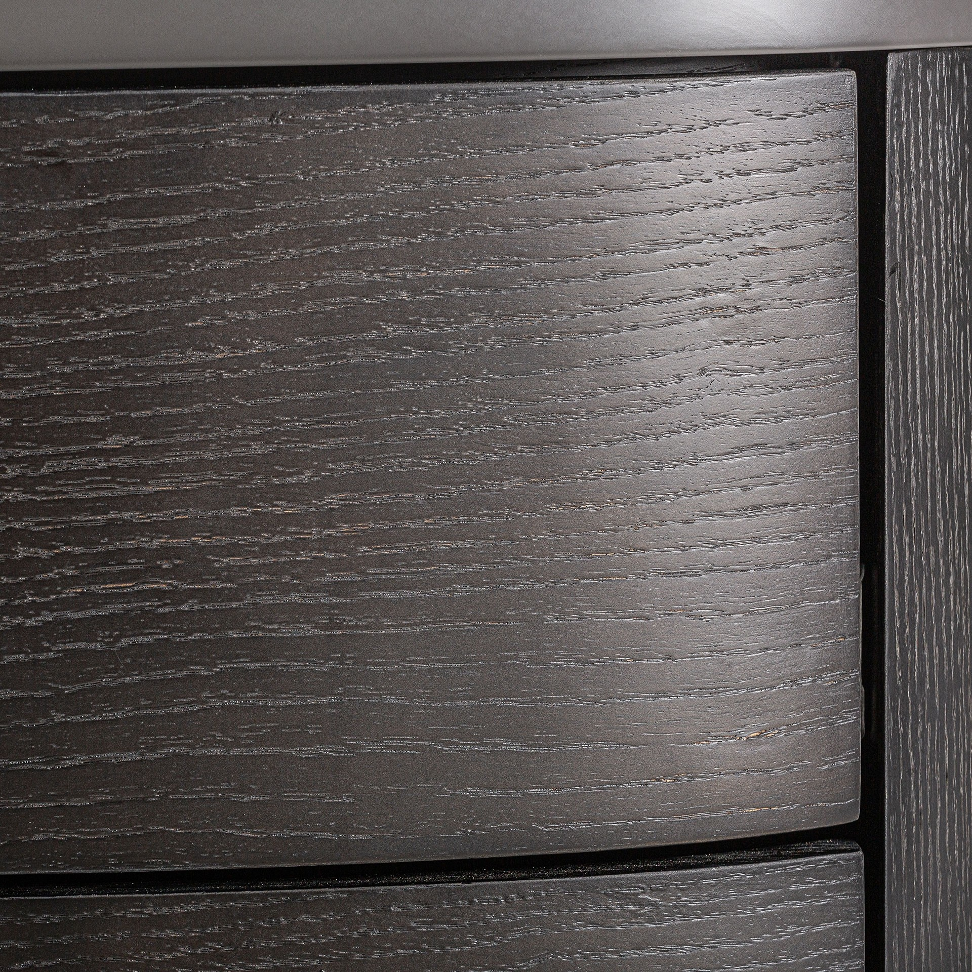 Нощно шкафче Лиестал, стил арт деко, изработено от МДФ дърво в черно, комбинирано със сив дъбов фурнир.