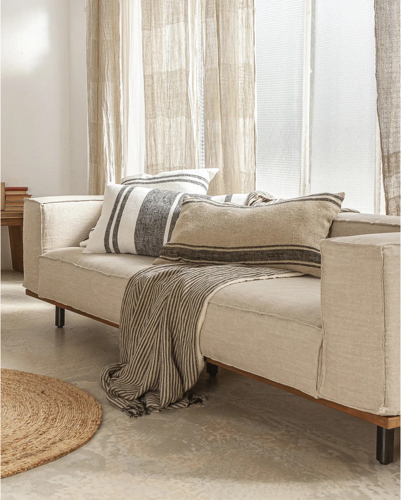 - Калъфката за възглавница CARNIVAL е част от естествен лен, който се отличава със своята лека текстура. Неговият модел на фини линии придружава стила му с деликатността, която характеризира нашата текстилна колекция. Дизайнът му отговаря на чистотата на продукта, тъй като е боядисан без химически агенти. Идеален продукт за обличане на свежи пространства със стил и естественост