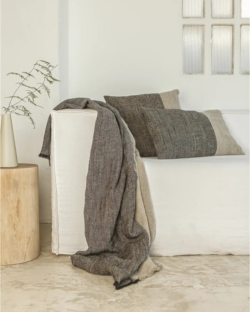 - Карето DADDAL е парче боядисан и естествен лен, което се откроява с дизайна си с разделяне на цветовете, естествената си ленена текстура и малкия си мотив „петелска лапа“. Незаменима мебел от колекцията DADDAL, перфектното допълнение към възглавниците от същото семейство.