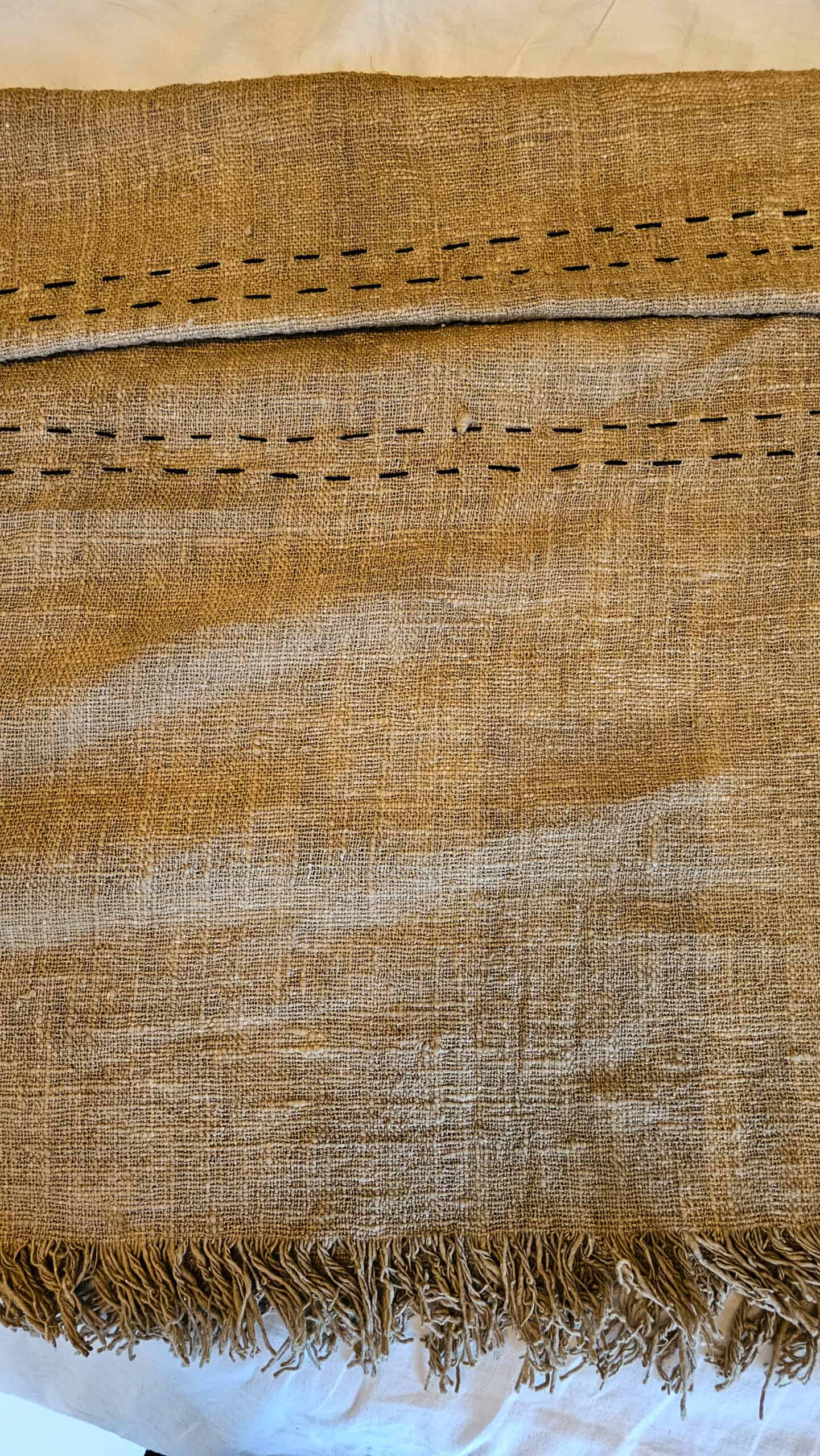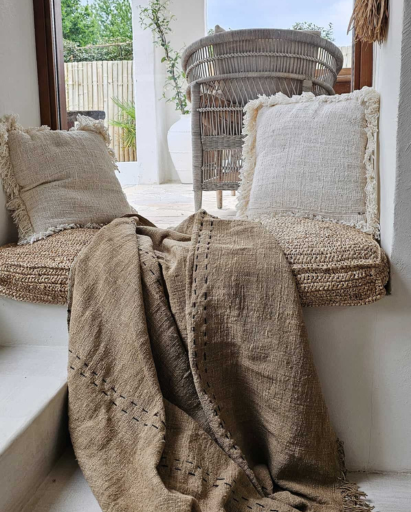 Красиво кафяво ленено каре с фини ресни и черни шевове. Това е картина за украса и чудесна за лежане под нея. Усеща се мека и много гъвкава. Комбинира се чудесно и с други ленени карета и възглавнички.