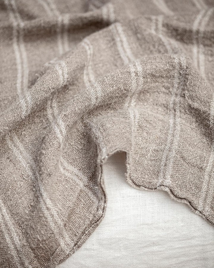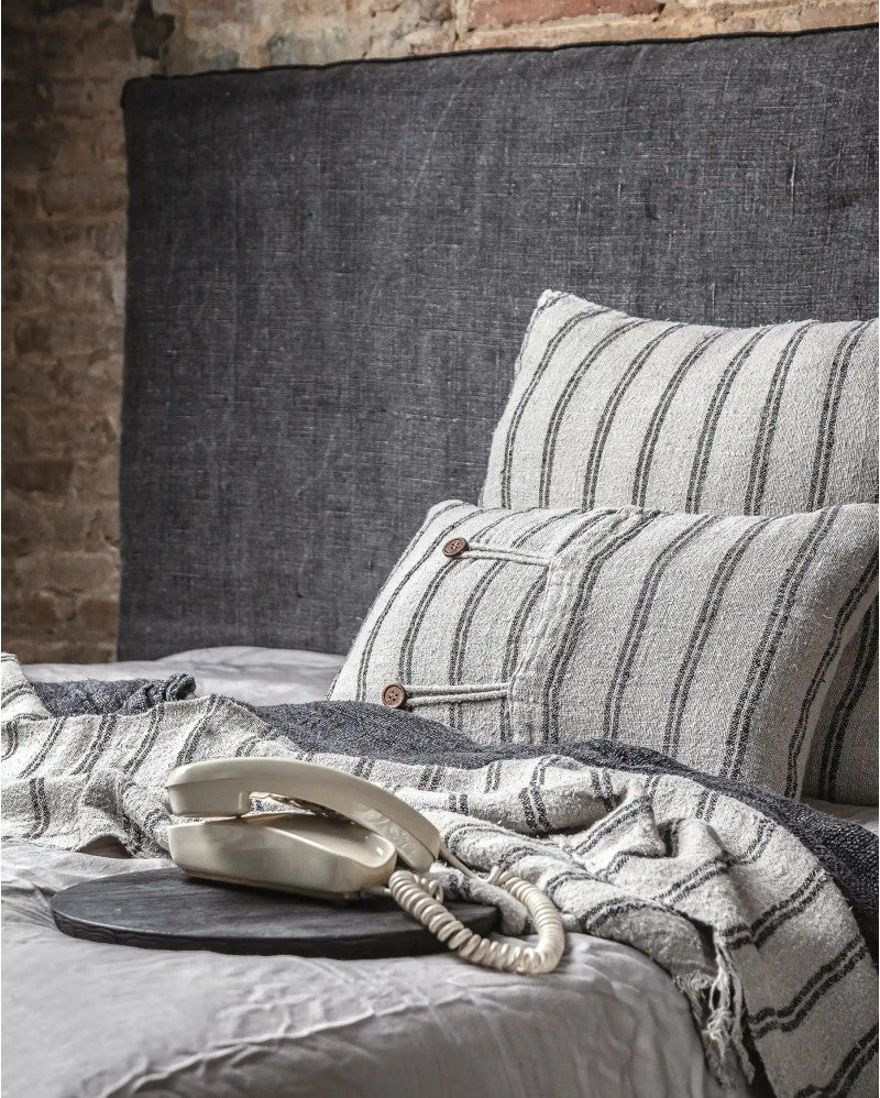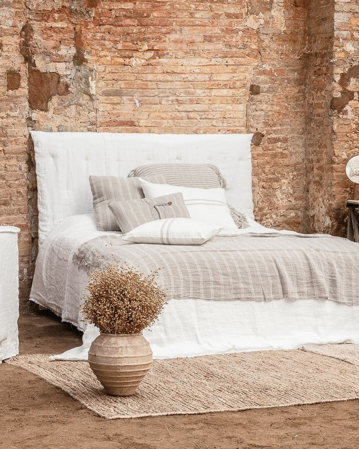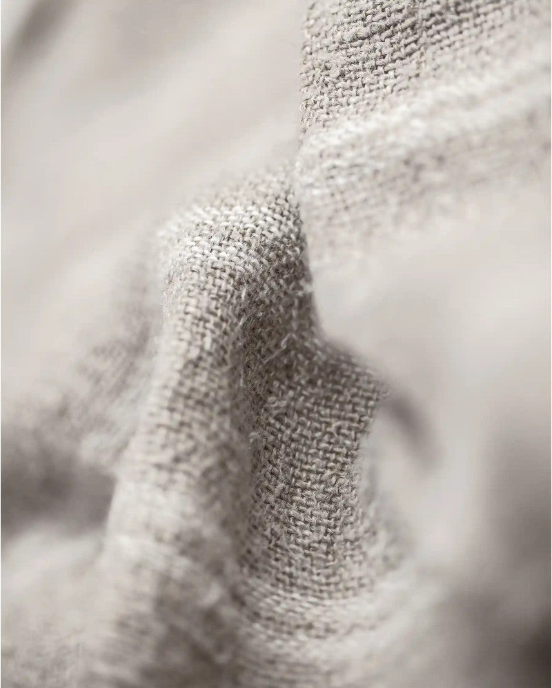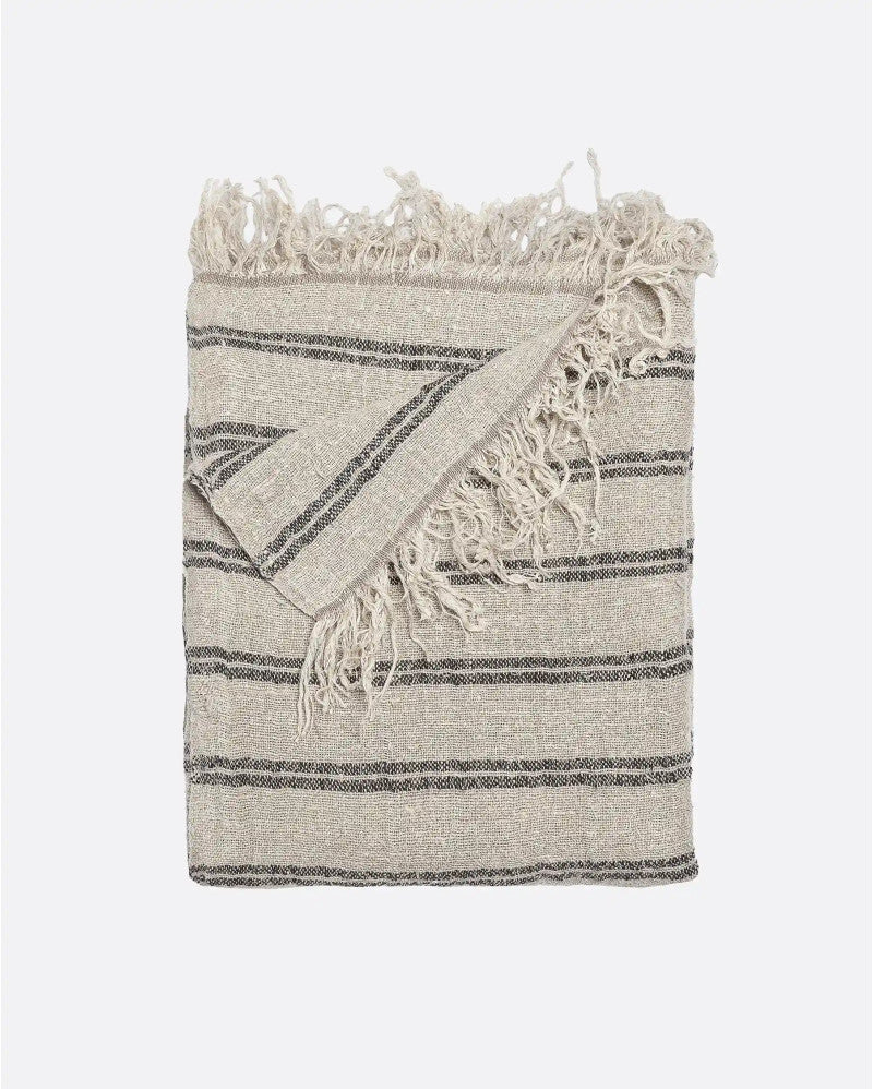- Одеялото LINEN White Plaid е от естествен лен в сивкав тон с фини хоризонтални бели райета и дълъг бретон в двата края. То принадлежи към линията LINEN с семпли и елегантни дизайни, които търсят детайл в семплото. Всяко одеяло е ръчно изтъкано от естествен лен от устойчиви култури в Индия.