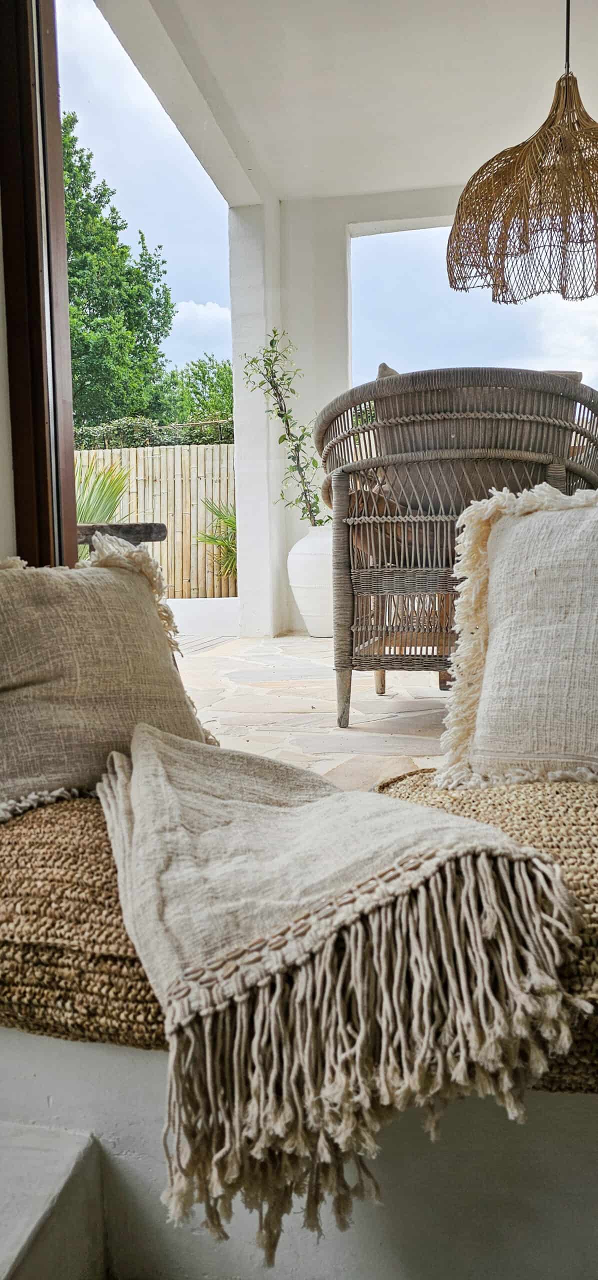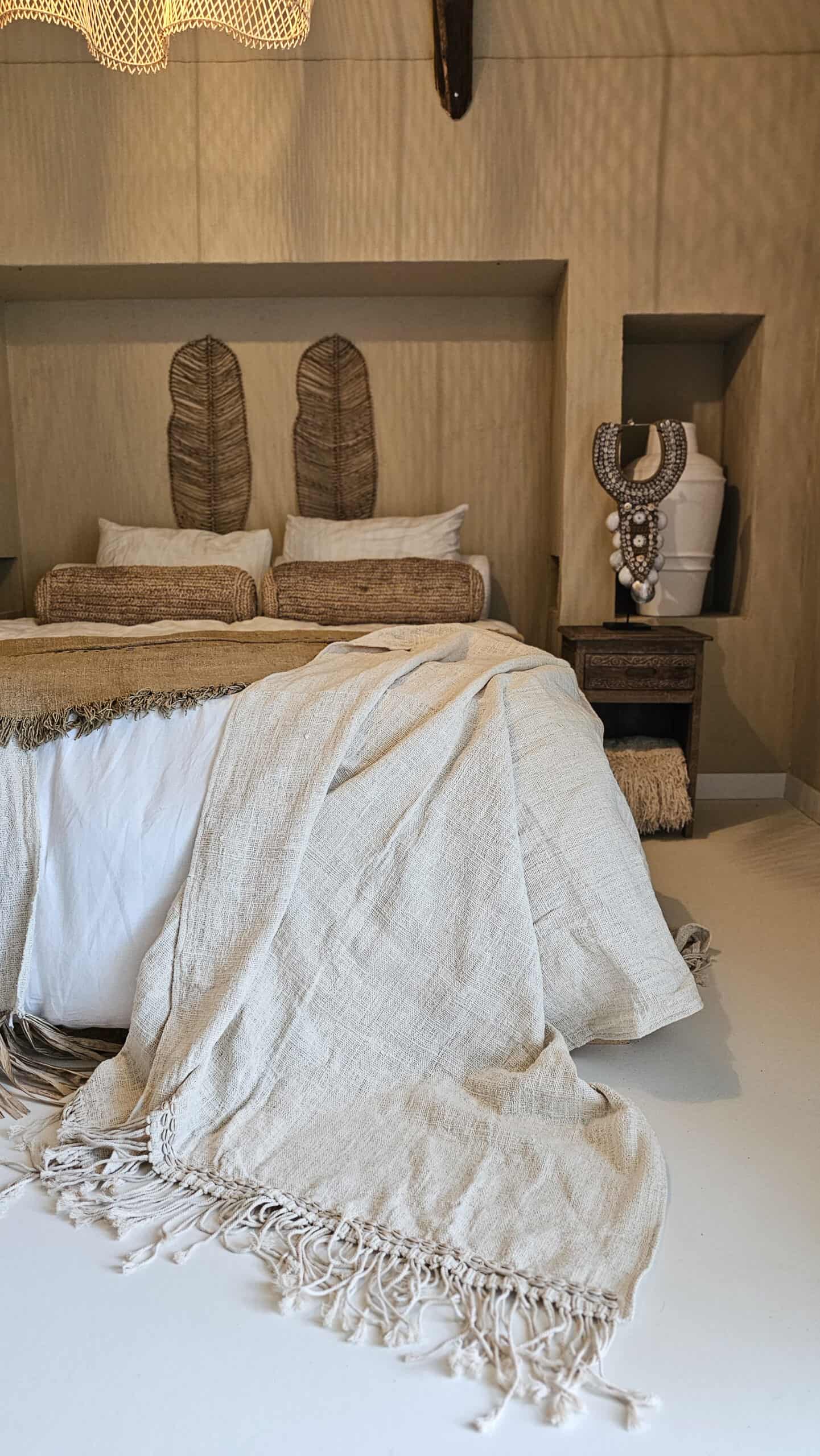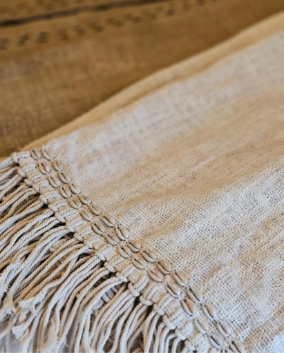 За тези, които обичат черупки от каури, това е наистина задължително. Груб лен, но мек на усещане и е много еластичен. Също така красива с ленените възглавници.
