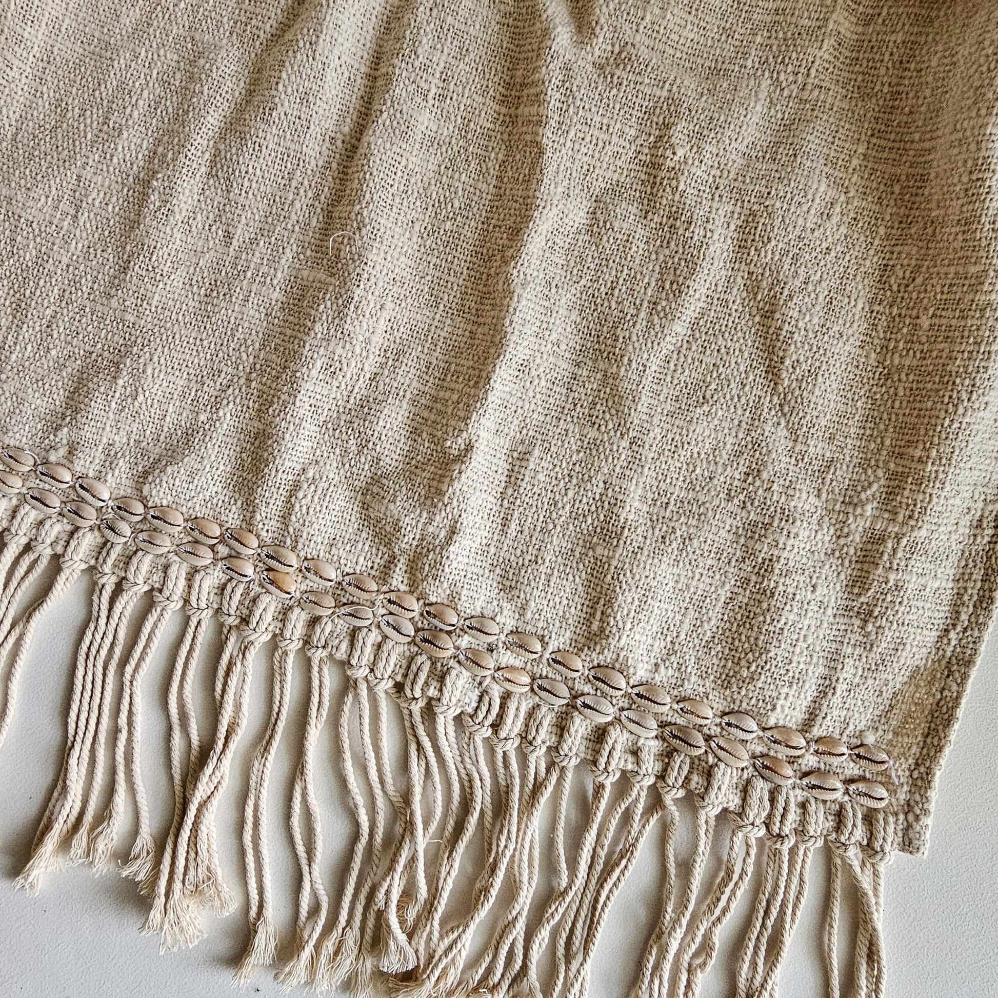 Красиво каре от груб лен с черупки от каури и едри ресни. Прекрасно лятно заради черупките и картинка за украса и чудесно за лягане.
